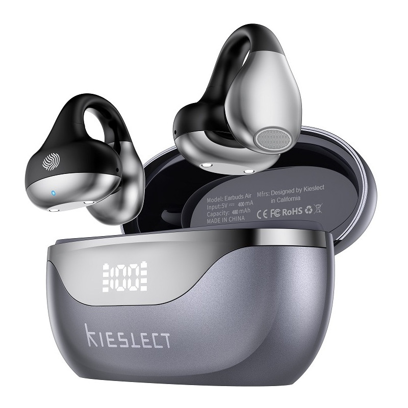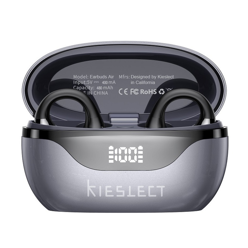 Écouteurs sans fil KIESLECT EARBUDS OPEN AI - Connectivité : Bluetooth - son surround 3D - Capacité de la Batterie : 500 mAh - Autonomie : jusqu'à 7 heures et au moins 22 heures avec l'étui de chargement - Temps de charge : 1.5 h pour le boîtier de charge sans écouteurs - Appels téléphoniques clairs avec ENC - Compatible avec Android, iOS, Windows - Étanchéité IPX4 - Couleur Noir - Garantie 1 an