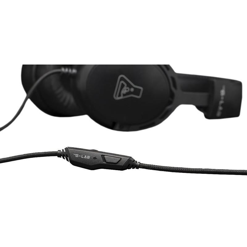 Casque filaire G-LAB KORP TITANIUM - Casque supra auriculaire - Son stéréo - Transducteurs en simili cuir extra moelleux - Technologie Xtra-Bass pour une qualité sonore incroyable - Microphone détachable - Réglage du volume via télécommande sur le fil - connectivité : Jack 3.5 mm - Réglage du volume via télécommande sur le fil - Compatible PC, PS4, PS5, SWITCH - Couleur noir - Garantie 1 an