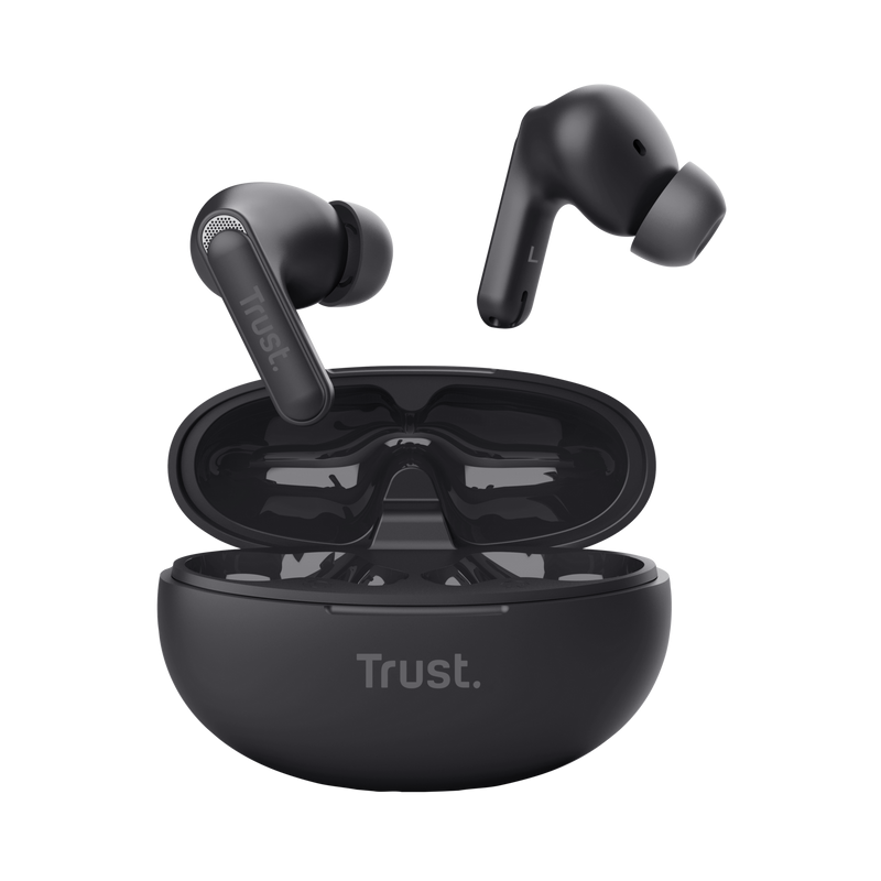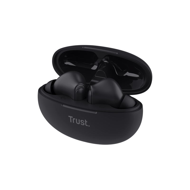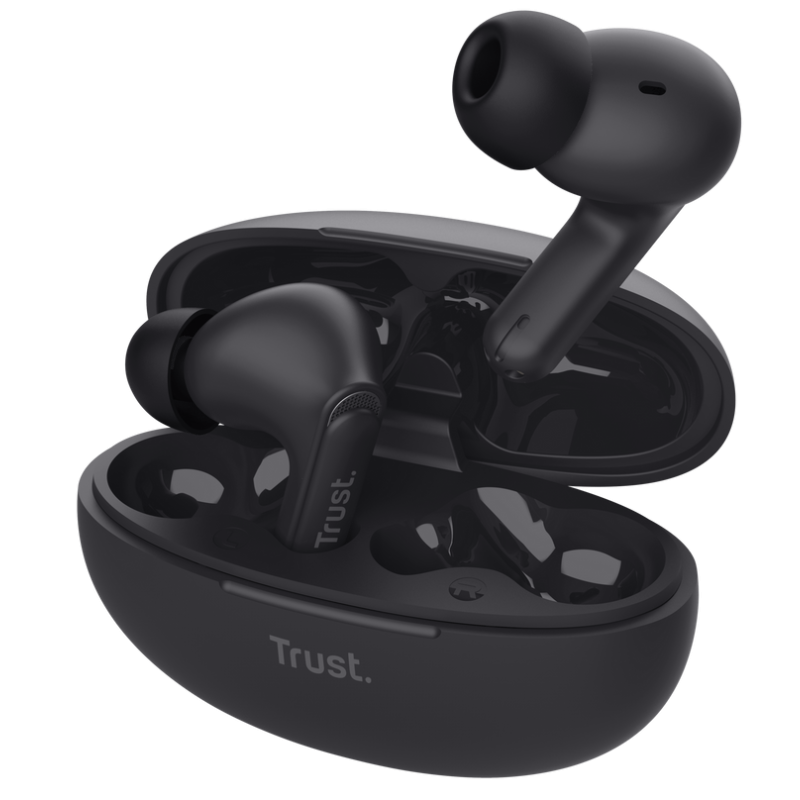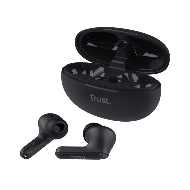 Écouteurs Sans Fil Trust Yavi - Taille du pilote : 11 mm - Connectivité : Bluetooth - Réponse en fréquence : 20 Hz, 20 000 Hz - niveau de pression acoustique maximal : 100 dB - microphones réducteurs de bruit - Véritable stéréo sans fil (TWS) - Commandes sur l'oreillette - fonctions des indicateurs LED : État de la charge, état de la connexion - compatibles : iOS, Android, Windows, macOS - Couleur Noir - Garantie 1 an