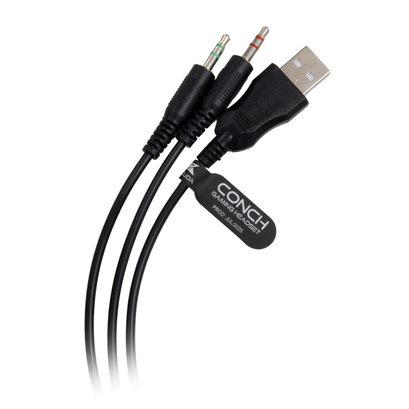 Micro Casque Baracuda BGH-031 Conch - Type de casque : Casque de jeu stéréo 2.0 - Taille du haut-parleur (mm) : 50 - Réponse en fréquence : 20 - 20000 Hz - Impédance des écouteurs : 32 ± 15 % Ohm - Sensibilité du casque : 118 +/- 3 dB - Sensibilité du microphone : -42 +/- 3 dB - Impédance du microphone : 2200Ohm - Diagramme de captation : Omnidirectionnel - Interface : 2 x 3,5 mm (3 broches) + USB - Réglage du volume : sur le casque - Éclairage : LED bleue - Longueur du câble (m) : 2,15 - Matériau : plastique ABS - Poids : 307 g - Compatibilité : PC - Couleur Noir - Garantie 1 an