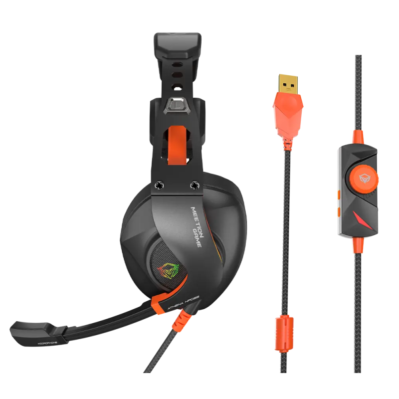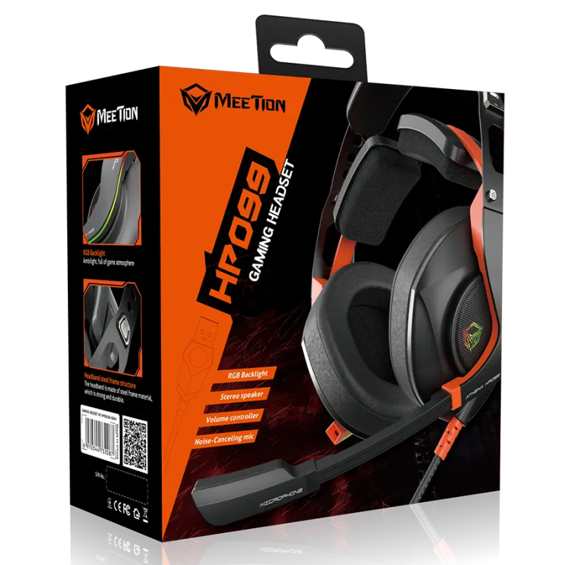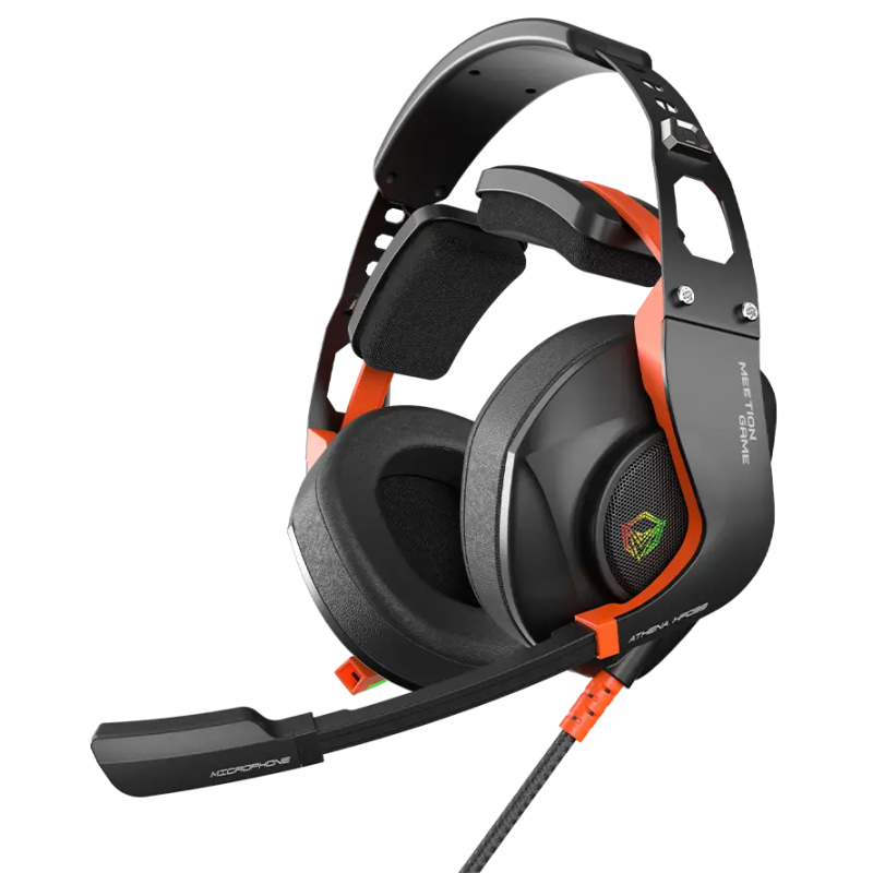 Micro Casque Gamer MEETION MT-HP099 - Conférencier : φ50mm - Sensibilité : 118±3dB - Impédance : 32Ω - Réponse en fréquence : 20 à 20 000 Hz - Interface : USB plaqué or - Microphone Omnidirectionnel - Réduction du bruit des appels - Sensibilité du microphone : -38±3db - Rétroéclairage RGB - Longueur du câble : 2,2 m - Poids : 400 ± 5 g - Couleur Noir - Garantie 1 an