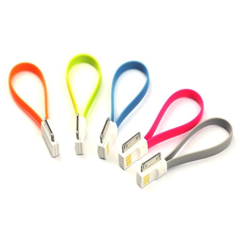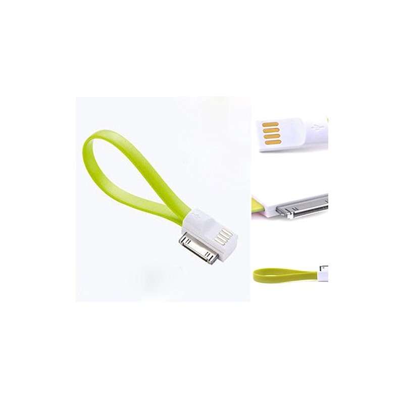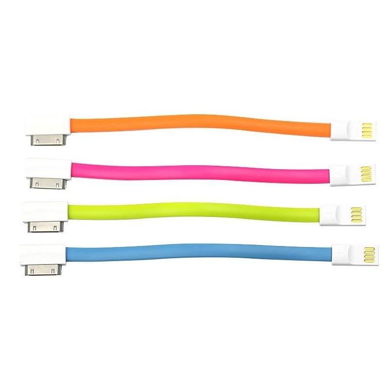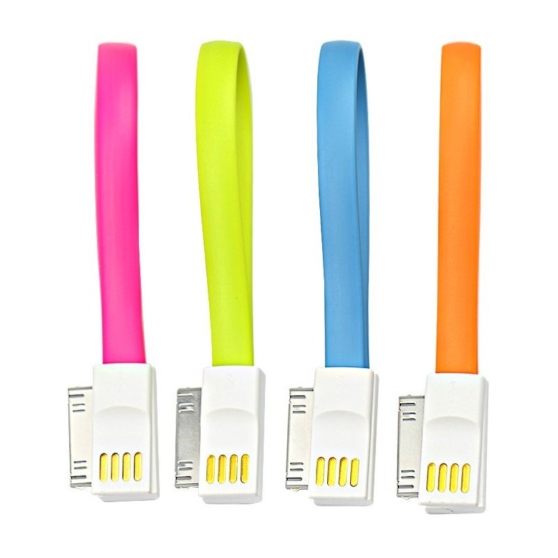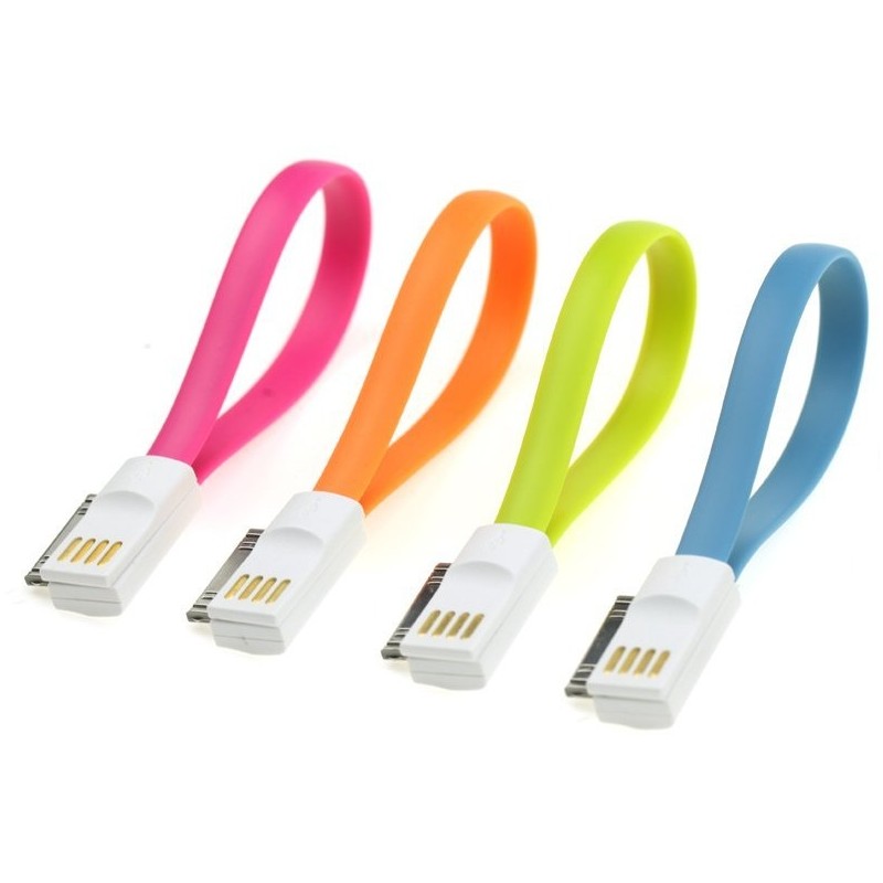 Câble USB magnétique pour iPhone 4/4s - Design plat avec aimant intégré - Compatible avec l'iPhone 4, l'iPad 2, l'iPad 3, l'iPod Nano 6, l'iPod Touch 4 - Couleur: Vert, Bleu, Rose et Orange