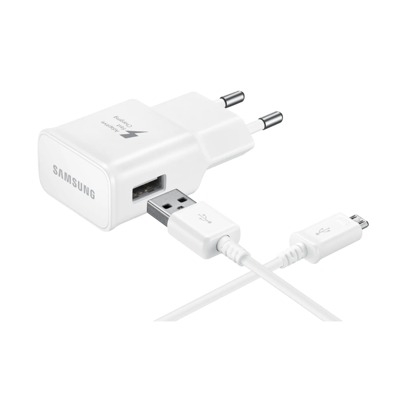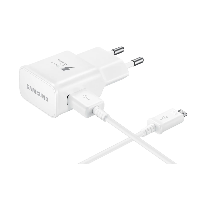 Chargeur secteur rapide Samsung Micro USB - Compatible Fast-Charge - Chargeur doté de la technologie AFC (Adaptive Fast Charging) - Chargeur mural - Câble détachable Micro USB - Tension de sortie: 5V / 2A - Dimensions: 36.6 x 23.5 x 76.0 mm - Poids: 38.3 g - Couleur Blanc