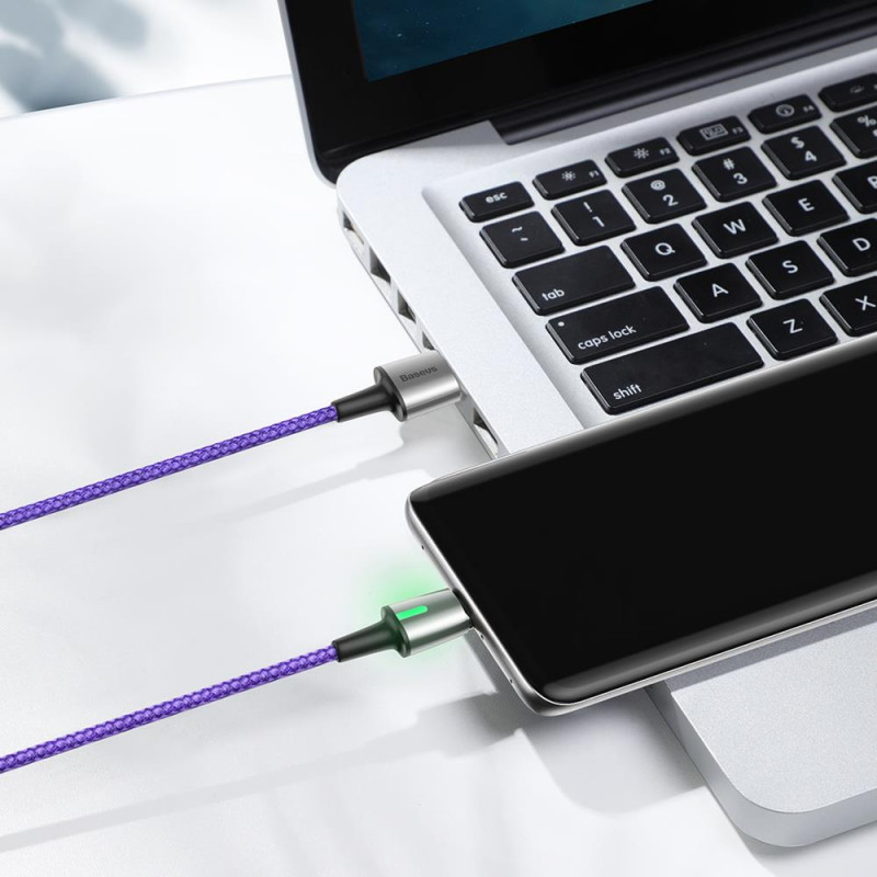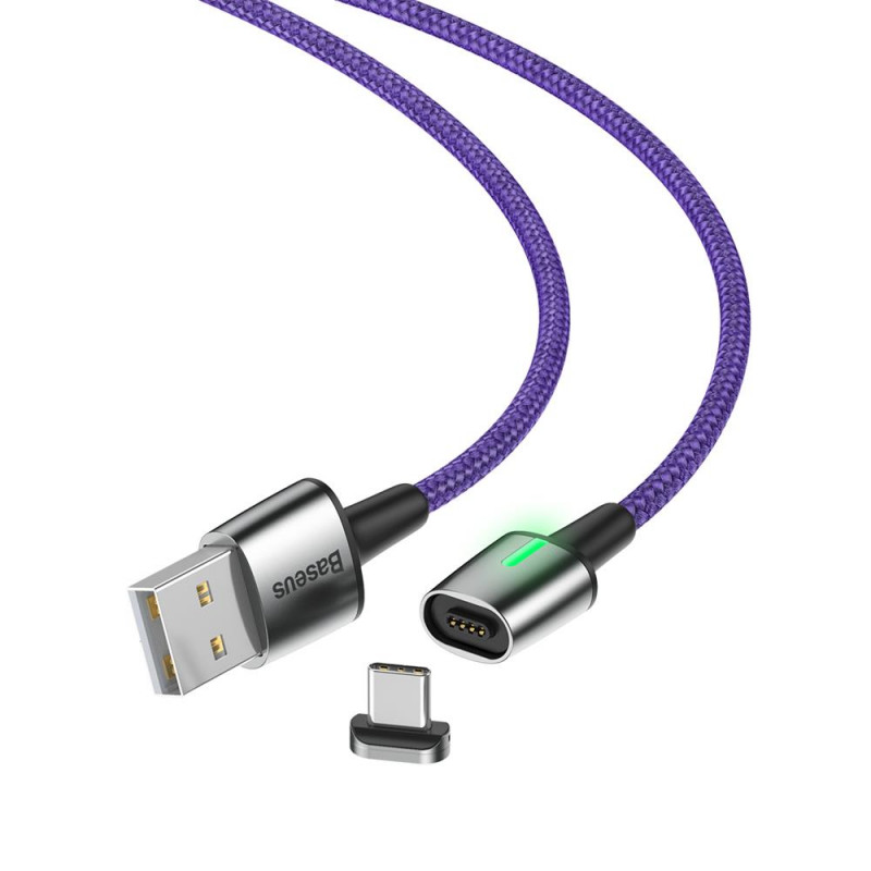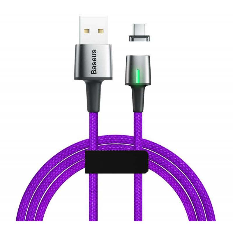 Câble magnétique USB Baseus Zinc Vers USB Type C - 8 broches est une solution moderne pour les appareils équipés d'un tel connecteur - Equipé d'une LED pour un meilleur emplacement -  il Permet un chargement rapide et une synchronisation - Courant: 2A - Longueur de câble: 2m - Couleur: Violet