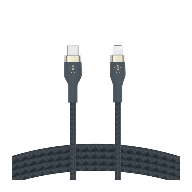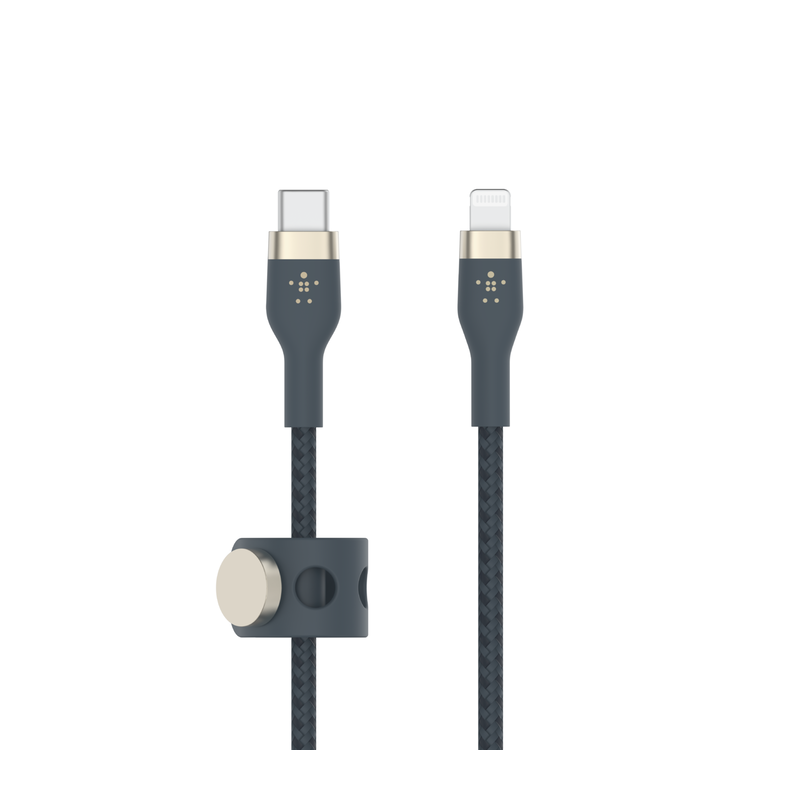 Câble Boost Charge Pro Flex Belkin USB-C vers Lightning - Fonction: Synchronisation et charge - Longueur de câble 3 m - Câbles 30 fois plus durables - Câbles anti-enchevêtrements - Certification IMF conçu pour iPhone et iPad - Système aimanté de rangement de câble - Couleur Bleu