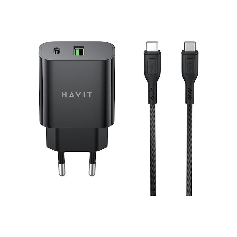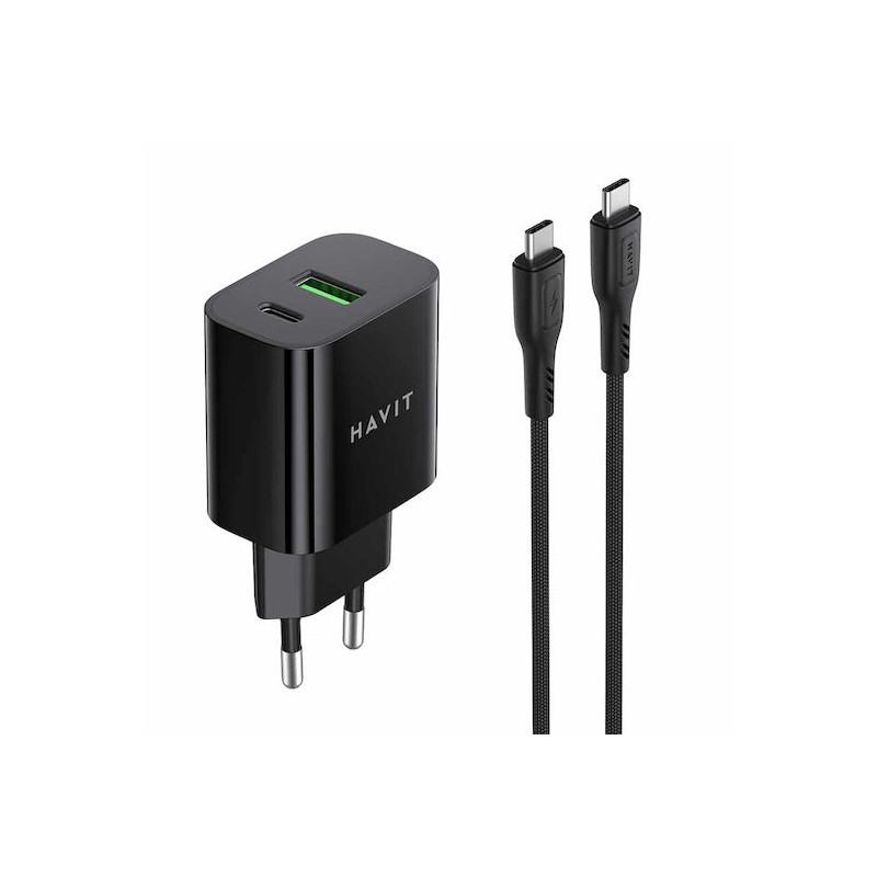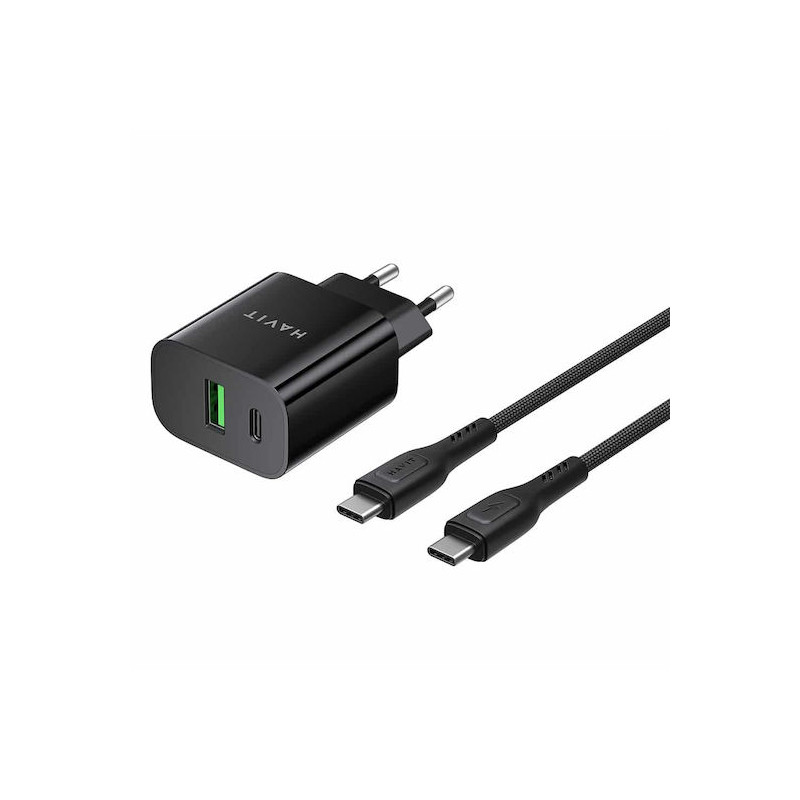 CHARGEUR SECTEUR DUAL USB-C PD20W + CABLE TYPE-C HAVIT PD60W