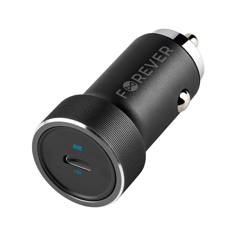 Chargeur de voiture Forever CC-06 - Nombre de port : 1 port - Interface : USB-C - puissance de sortie : 20 W - norme de recharge rapide : PD + QC (Power Delivery et QuickCharge) - Couleur Noir