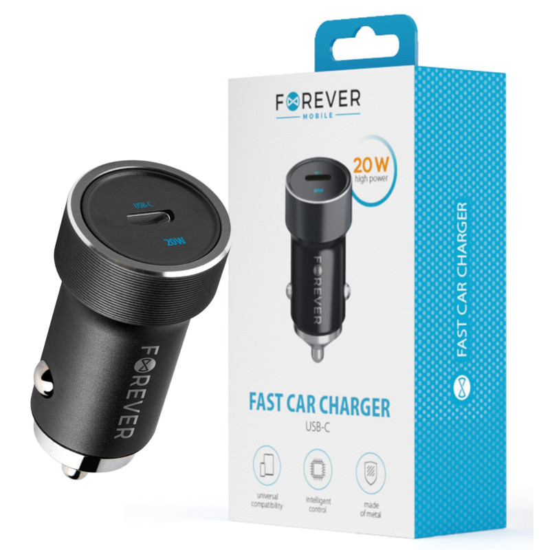 Chargeur de voiture Forever CC-06 PD QC 1x USB-C 20W / Noir