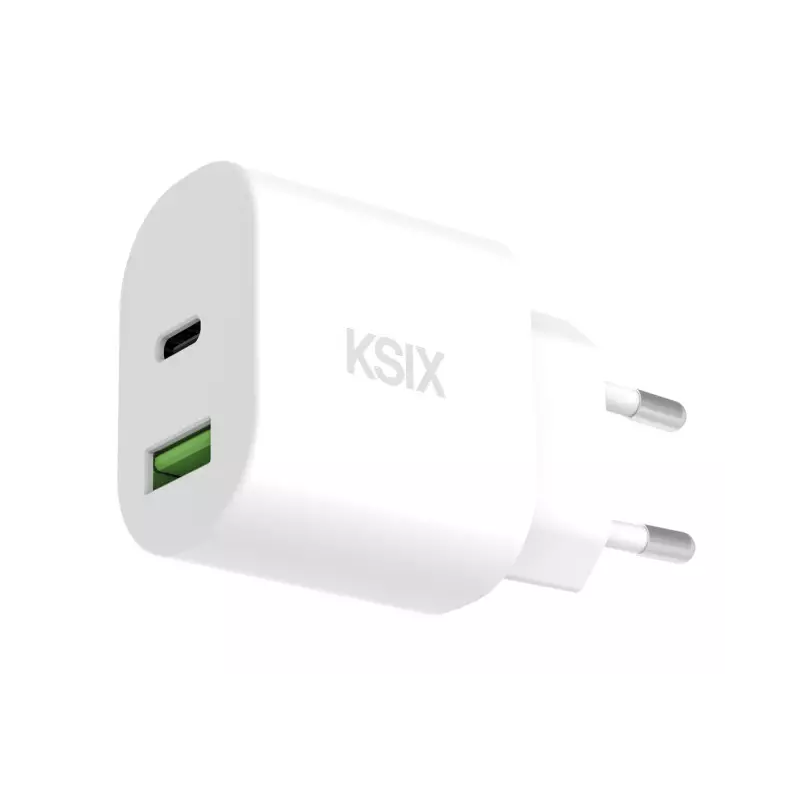 Chargeur mural KSIX - Nombre de ports : 1x USB-C, 1x USB-A - Puissance : 30 W - câble USB-C vers Lightning - Longueur du câble : 1 m - Technologie : GaN - Charge ultra rapide avec Power delivery 3.0 sur le port USB-C - Puissance instantanée avec Quick Charge 3.0 Sur le port USB-A - La technologie Gan (nitrure de gallium) de ce chargeur KSIX offre une plus grande efficacité énergétique, moins de surchauffe et une vitesse de charge supérieure, le tout dans un format ultra-compact. Plus de puissance dans moins d'espace - Couleur Blanc