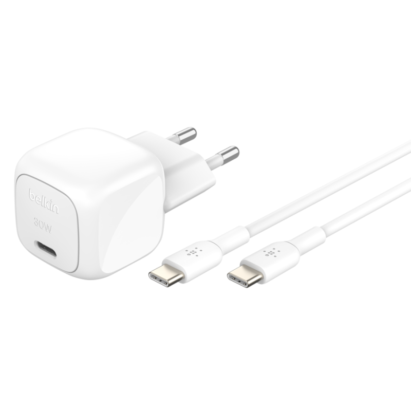 Chargeur secteur BoostCharge USB-C compact (30 W) / câble USB-C vers USB-C / Blanc