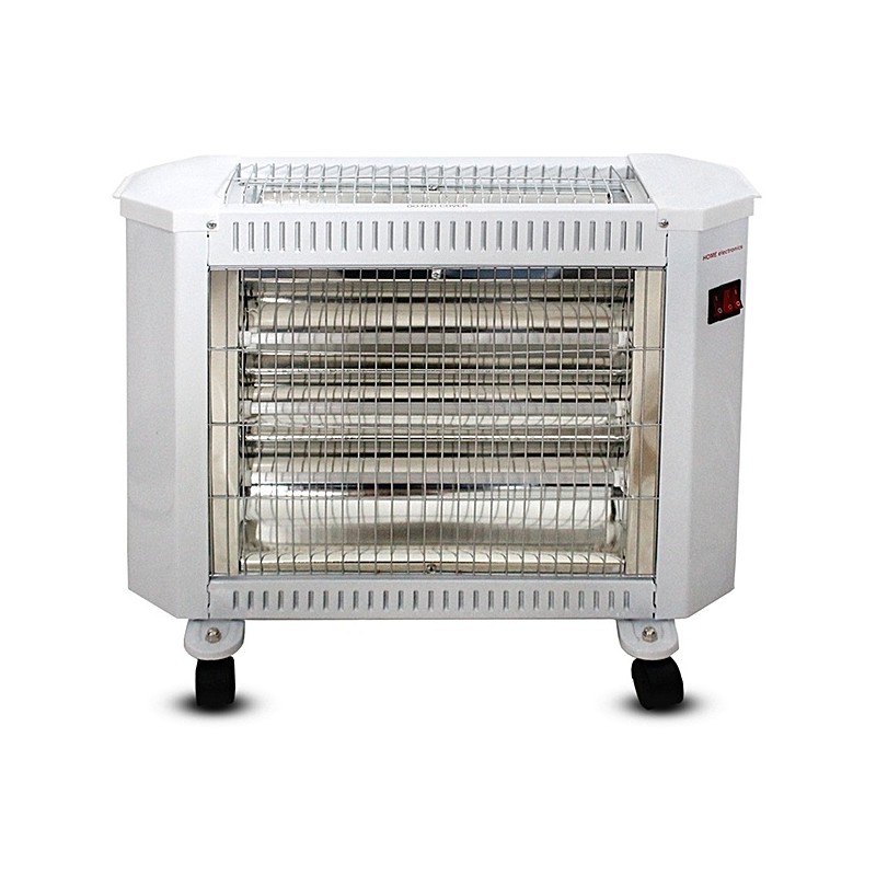 Chauffage Électrique à Rayonnement Quartz - Puissance: 2000 W - 4 élément de chauffage (1 en haut et 3 en face) - 4 niveaux de température: 500W /1000W/1500W/2000W - Avec bouton de réglage - Facile à régler les niveaux de température - Avec une protection de grille de maille - Avec poignée - Facile à déplacer - Couleur Blanc - Garantie 1 an