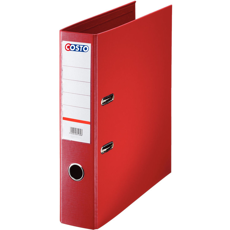 Classeur à levier COSTO Pro Dos A4 PP/PP D75 - 2 anneaux - Largeur de Dos: 75 mm - Format de papier à classer: A4 - Capacité de papier à classer: jusqu’à 600 feuilles perforées - carton fort recouvert de polypropylène - Grand porte-étiquette - Dimensions: 280 x 320 mm - Couleur Rouge