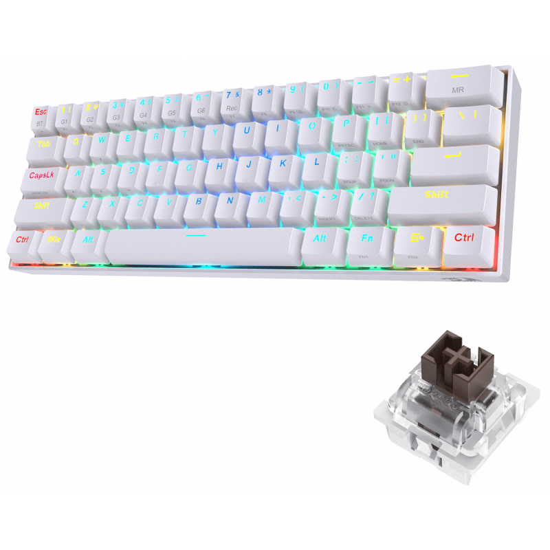 Clavier Gamer Mécanique REDRAGON K530 Draconic - Connectivité: Filiare / Sans Fil (Bluetooth v5.0) - Clavier mécanique: QWERTY - Capacité de batterie longue durée de 2400mAh - 13 modes d'éclairage prédéfinis dynamiques - Hauteur réglable - Compatible avec Windows 10, Windows 8, Windows 7, Windows Vista et Windows XP - Connecteur USB: Câble de type C détachable - Dimensions: 291,7 x 101,7 x 36 mm - Couleur: Blanc - Garantie: 1 an