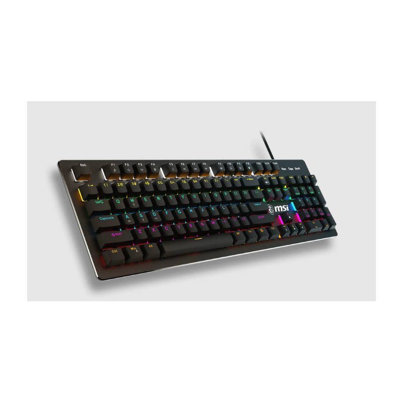 Clavier mécanique MSI Forge GK300 - Norme AZERTY - Rétroéclairage LED RGB arc-en-ciel - 105x Touches - Interface USB - Touches ergonomiques - Résistant aux projections d'eau - Touches de raccourcis (multimédia / luminosité) - Base avec bandes en caoutchouc - Fonction anti-ghosting - Dimensions 448 x 139 x 39mm- Poids 1045g - Garantie 1 an