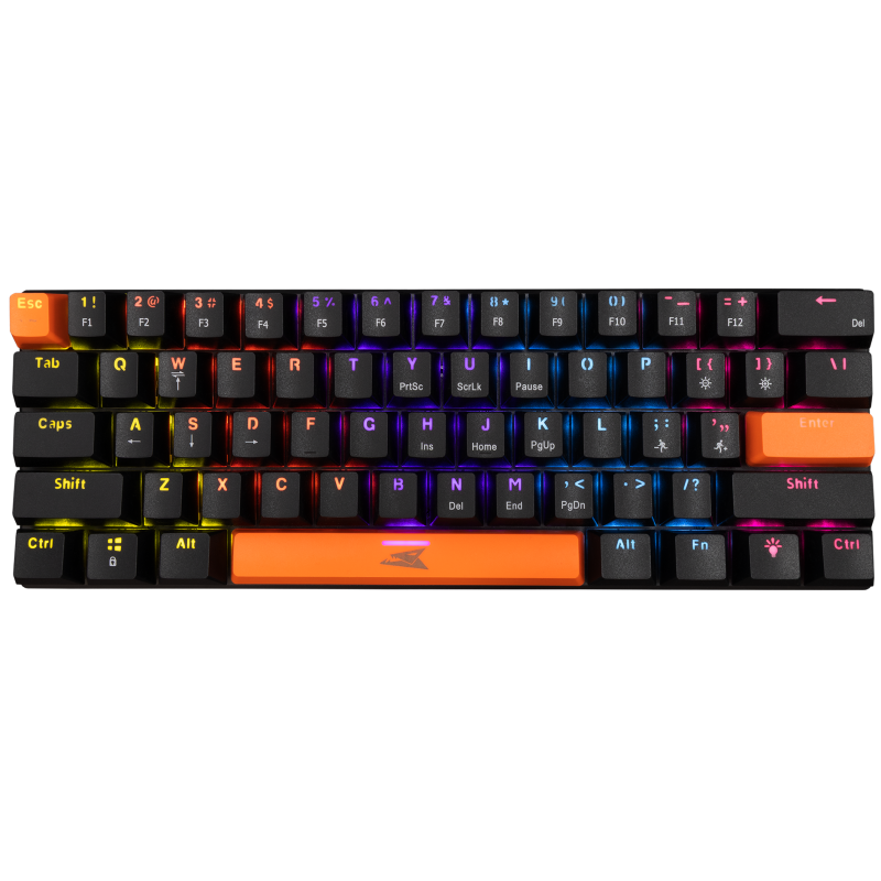 Clavier Gaming Baracuda BGK-03121 DOLPHIN - Nombre de clés : 61 - Type d'interrupteur : Mécanique - Bleu - Éclairage : Effet arc-en-ciel - 17 modes différents - Disposition des touches : compacte - Anti-Ghosting : 22 boutons - Norme du clavier : QWERTY - Interface : USB 2.0 - Longueur du câble : 1.5 m - Matériel : Plastique - Compatibilité : Windows 7/8/10/11, Mac OS, Chrome OS, Linux - Dimensions : 290 x 99,5 x 36 mm - Poids : 405 g - Couleur : Noir - Garantie 1 an