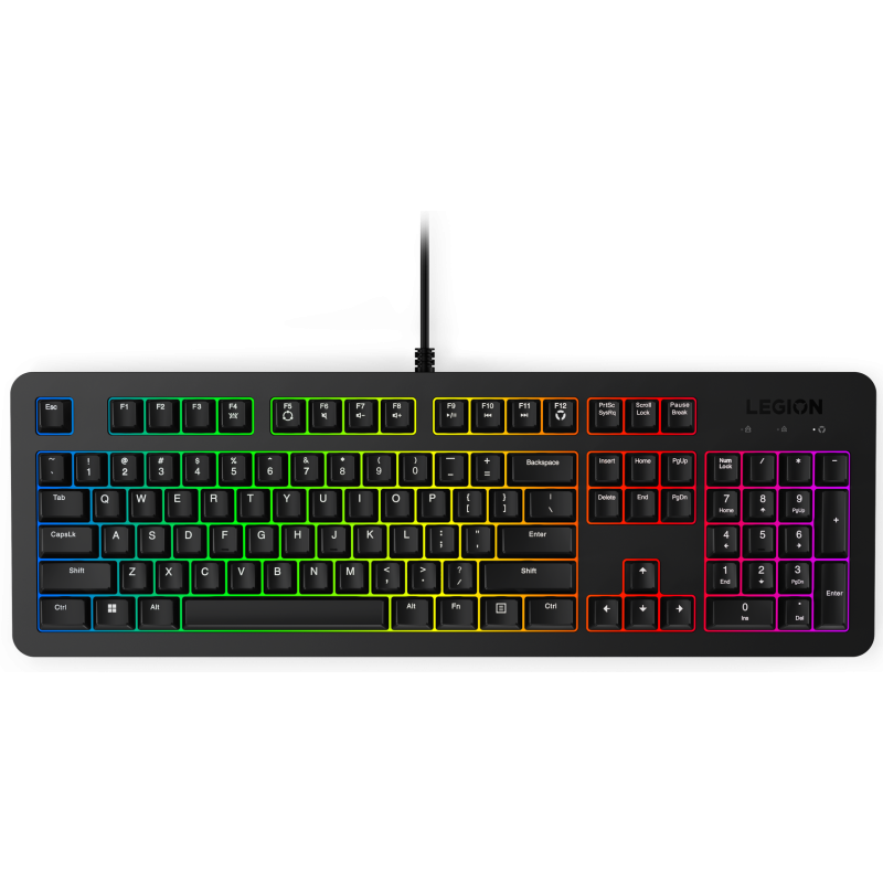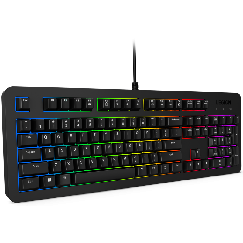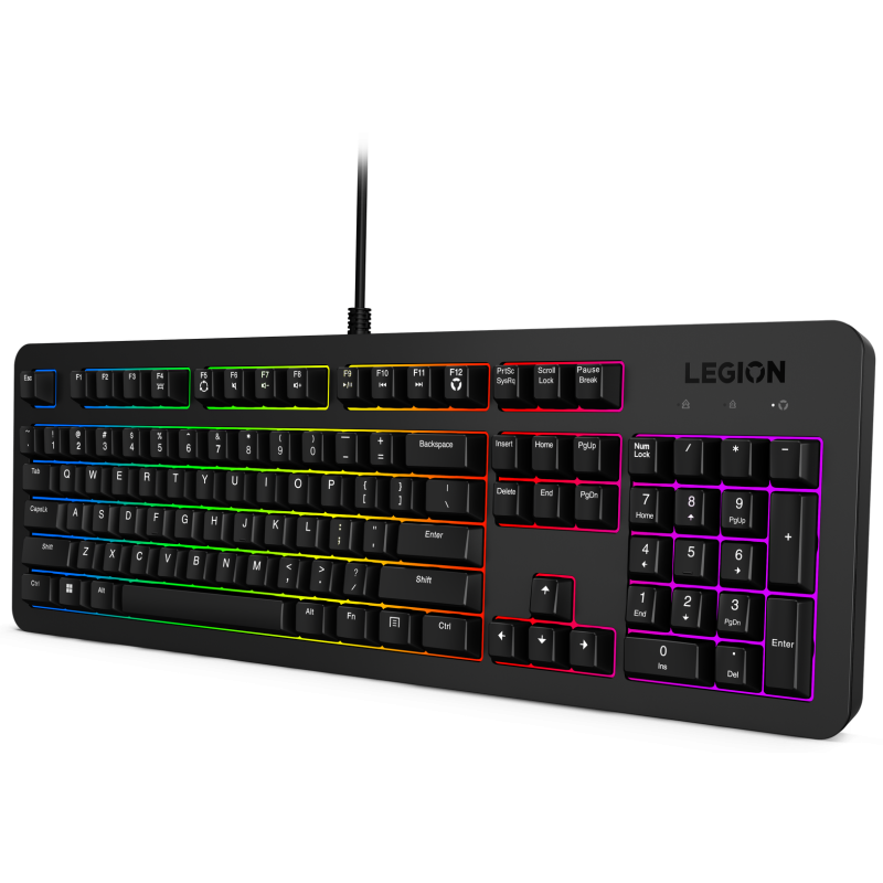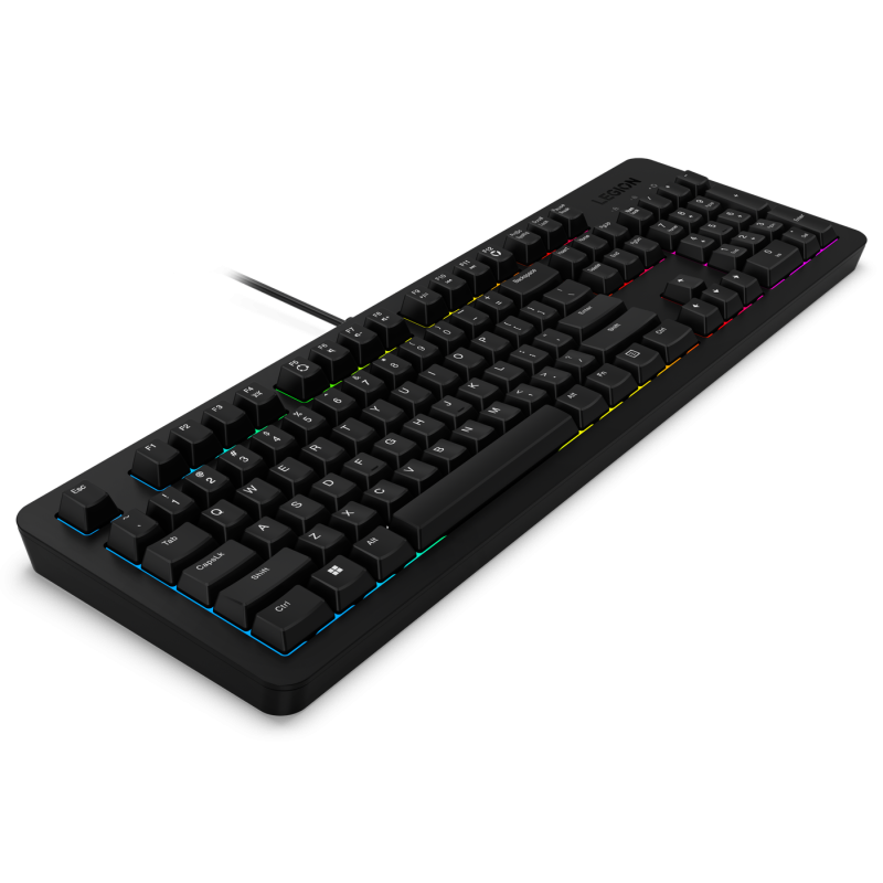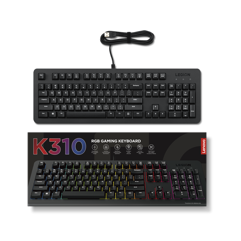 Clavier Gamer Filaire LENOVO LEGION K310 - Type de connexion : Filaire via USB 2.0 - Éclairage RGB à 5 zones - Nombre de touches : 105 touches - Type de commutateur : Membrane - Longueur/type de câble : 1,8 m / PVC - Cycle de vie des touches du clavier : Jusqu’à 20 millions de clics - Systèmes d’exploitation compatibles : Windows 10, Windows 11 - Réglable en inclinaison - Disposition de la langue : Français (AZERTY) - Poids : 846 g - Dimensions avec emballage (L x P x H) : 482 mm x 198 mm x 45 mm - Garantie 1 an