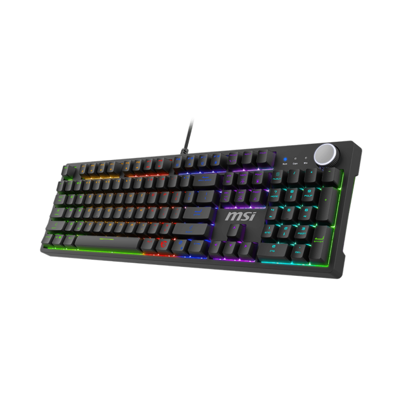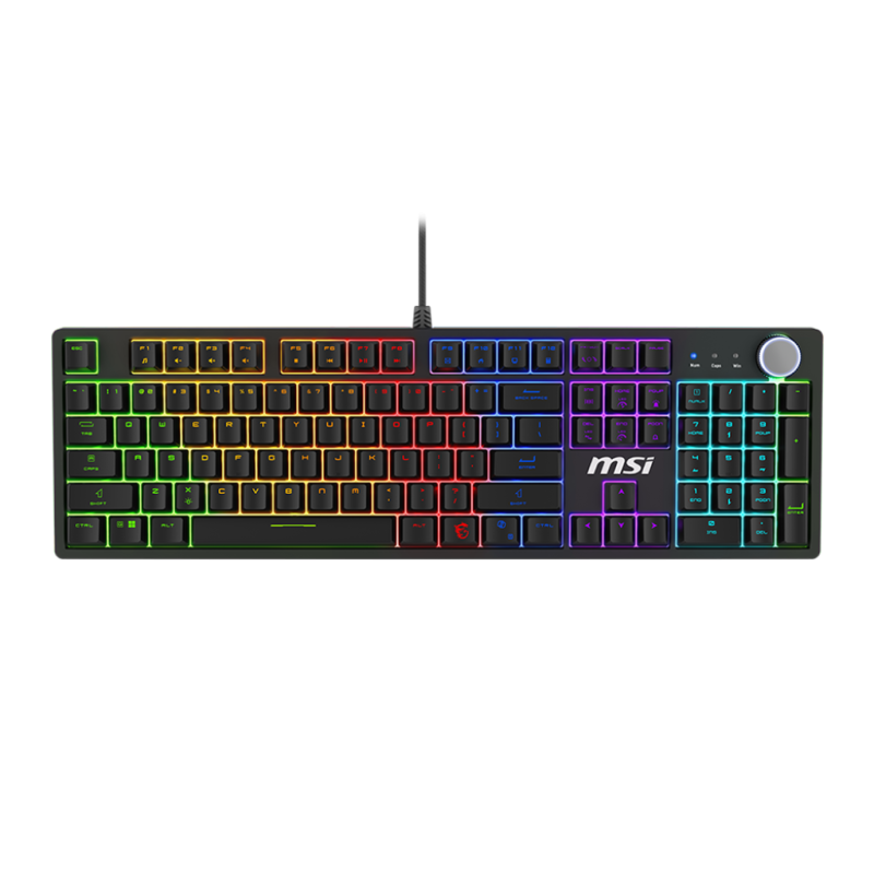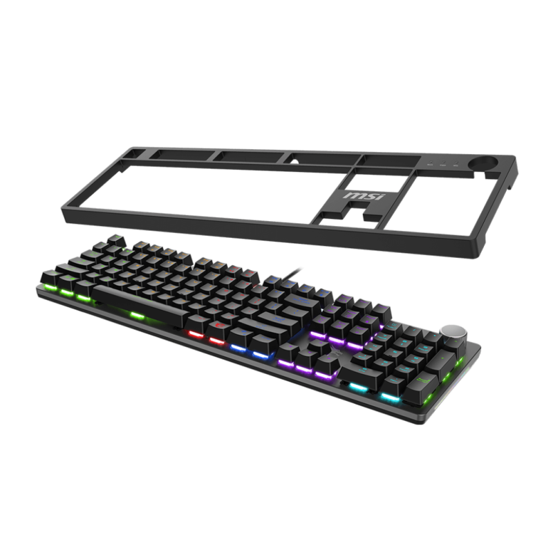 Clavier Gaming Filaire MSI FORGE GK320 - Switches Mécaniques - Interface: USB 2.0 - Nombre de touches: 104 US / 105 UK / 108 JP - Accessoires: 1× switches supplémentaires / 1× pince - Rétroéclairage: LED - Durée de vie: 50 millions de frappes - Fonction N-Key Rollover: Anti-Ghosting sur toutes les touches - Longueur du câble: 1.6 m - Couleur Noir - Garantie 1 an