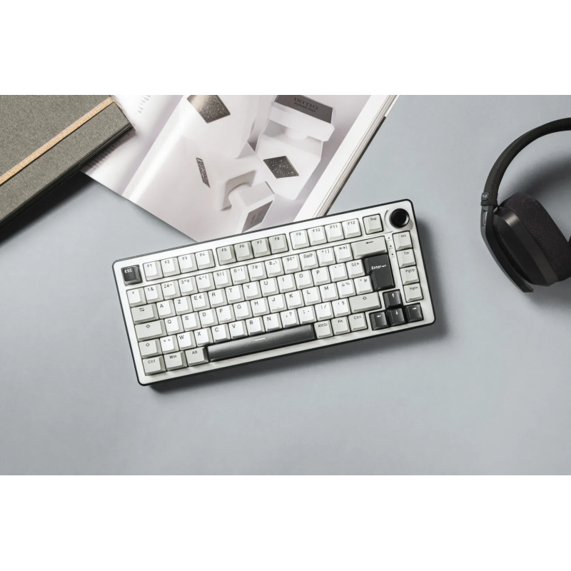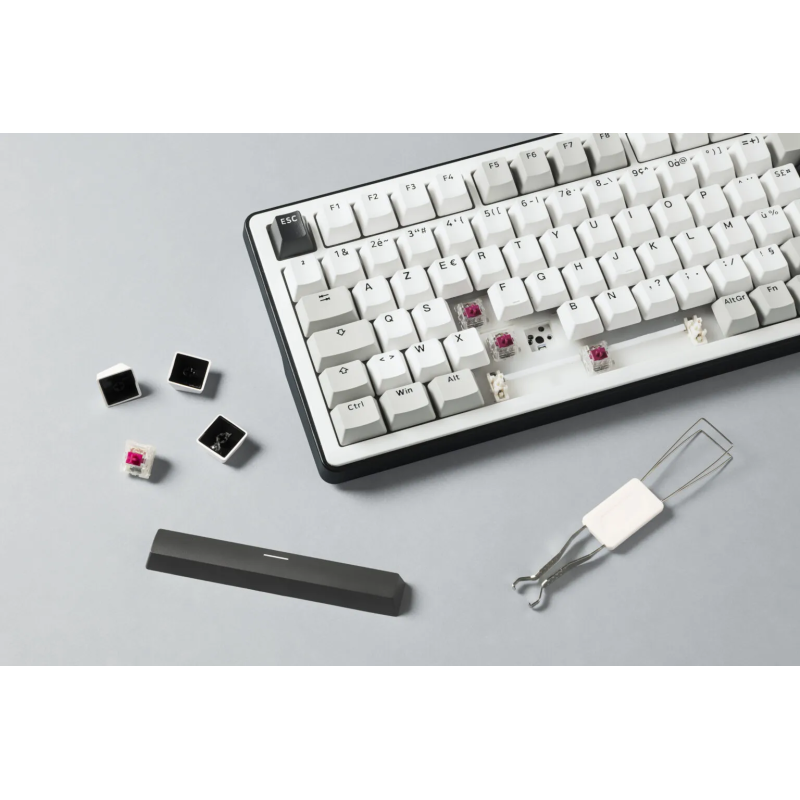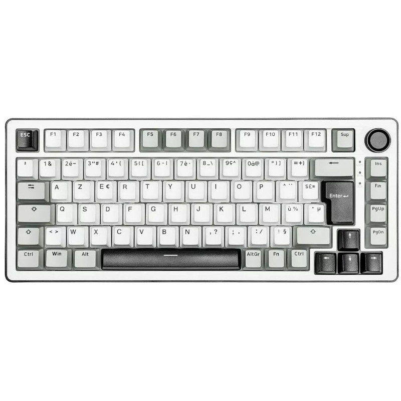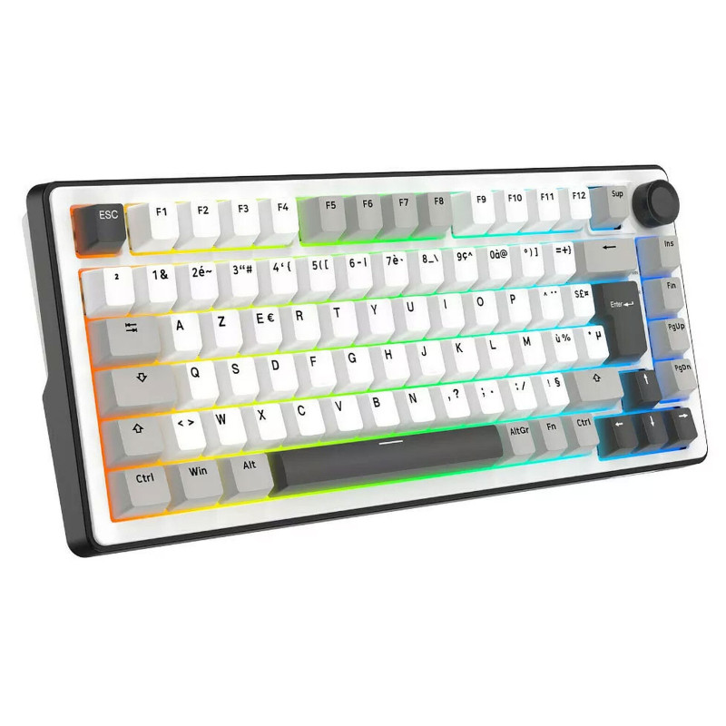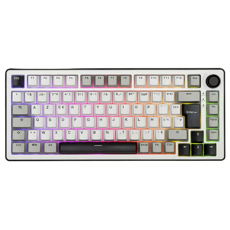 Clavier gaming G-LAB KEYS ELITE 300 TKL - Touches : PBT double injection ultra-résistantes - Disposition : AZERTY Français - Switchs : Mécaniques linéaires pré-lubrifiés, hot-swappable - Structure : Gasket 5 couches – frappe fluide, silencieuse et amortie - Taux de rafraîchissement : 1000 Hz – réactivité instantanée (latence < 1 ms) - Anti-ghosting 100% NKRO - Rétroéclairage : RGB personnalisable (touches + côtés) - Raccourcis multimédias : 12 raccourcis + molette de contrôle multimédia - Type de connexion : Triple mode : 2.4 GHz / Bluetooth / Filaire - Batterie 4000 mAh - Autonomie : jusqu’à 80h d’utilisation - Compatibilité : Windows et Mac/XBOX/PS4/PS5 - Poids : 1.1 Kg - Couleur Blanc - Garantie 1an
