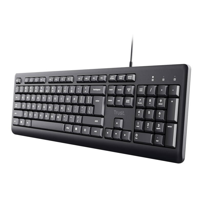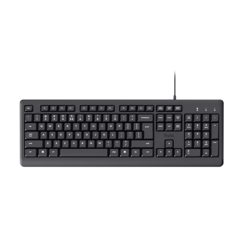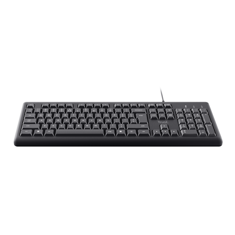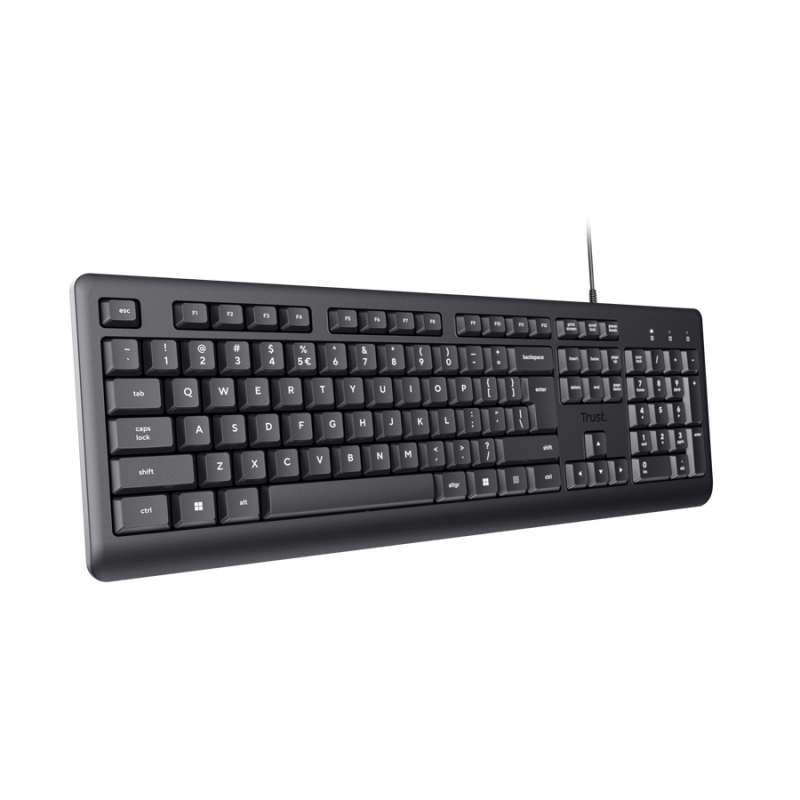 Clavier Filaire TRUST PRIMO - Norme Clavier : AZERTY - Connectivité : USB 2.0 - Nombre de clés : 104 - touches silencieuses - pavé numérique - Anti-déversement - Durée de vie de la clé : 5 000 000 presses - Compatibilité : Windows - Poids : 488 g - Couleur Noir - Garantie 1an