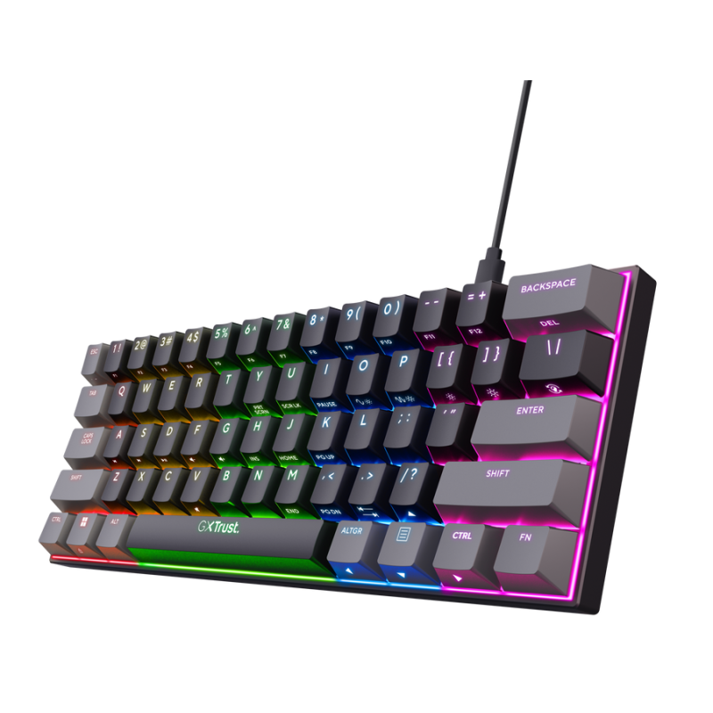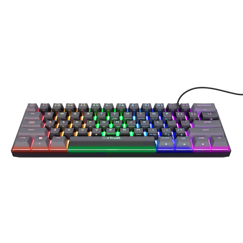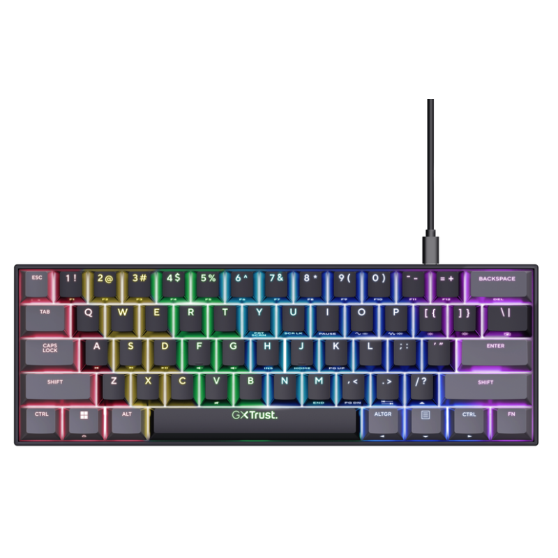Mini Clavier Gamer Filaire Mécanique TRUST ACIRA GXT867 - Connectivité : USB 2.0 - Nombre de clés : 61 - Clés programmables - Rétroéclairage RGB - Type de commutateur : Linéaire - Durée de vie de la clé : 50 000 000 presses - Compatibilité : Windows, macOS, Chrome OS - longueur du câble : 150 cm - Poids : 460 g - Couleur Noir - Garantie 1an