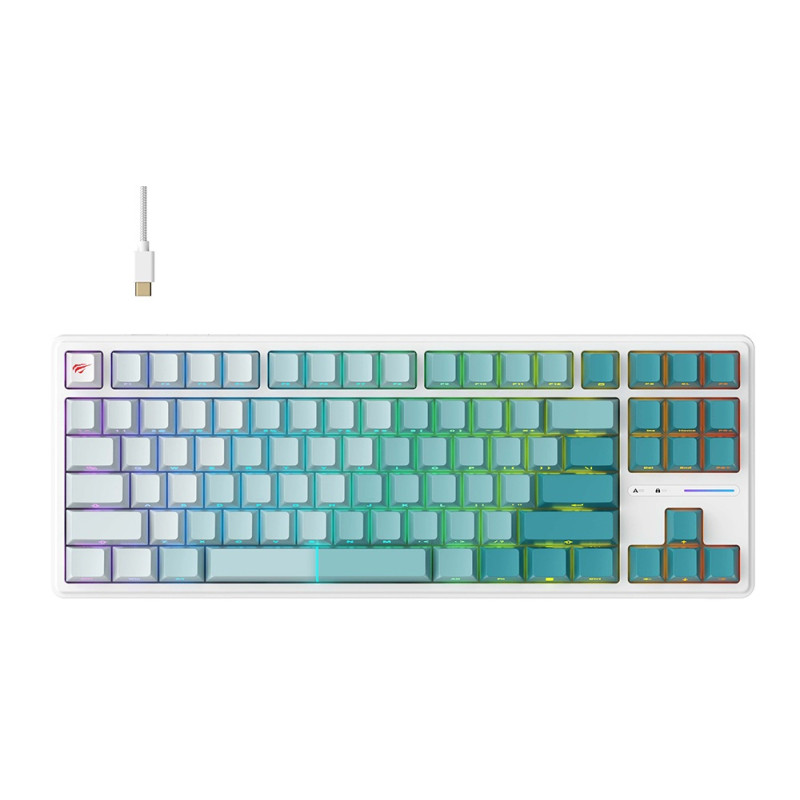 Clavier Gamer HAVIT BACKLIT KB901L - Type de clavier : Mécanique - 88 touches - Longueur de câble : 1.8 m - Touches Anti-Ghosting - Connectivité : Filaire - Type d'interface : USB - Norme : QWERTY - Éclairage RGB - LInterrupteurs longue durée de vie : 50 millions de frappes - Couleur Blanc - Garantie 1 an