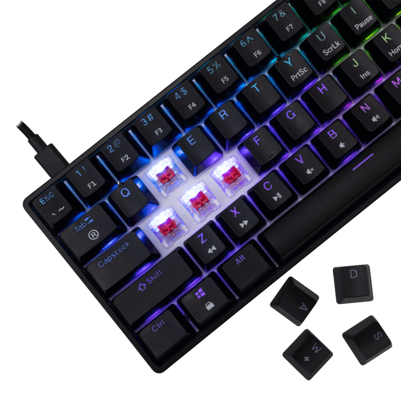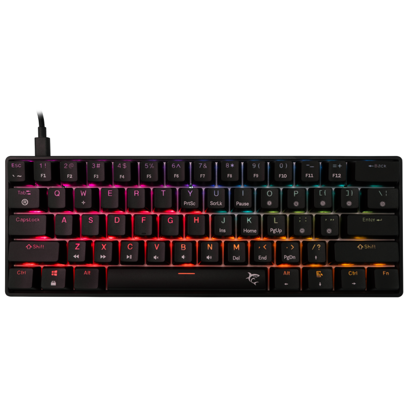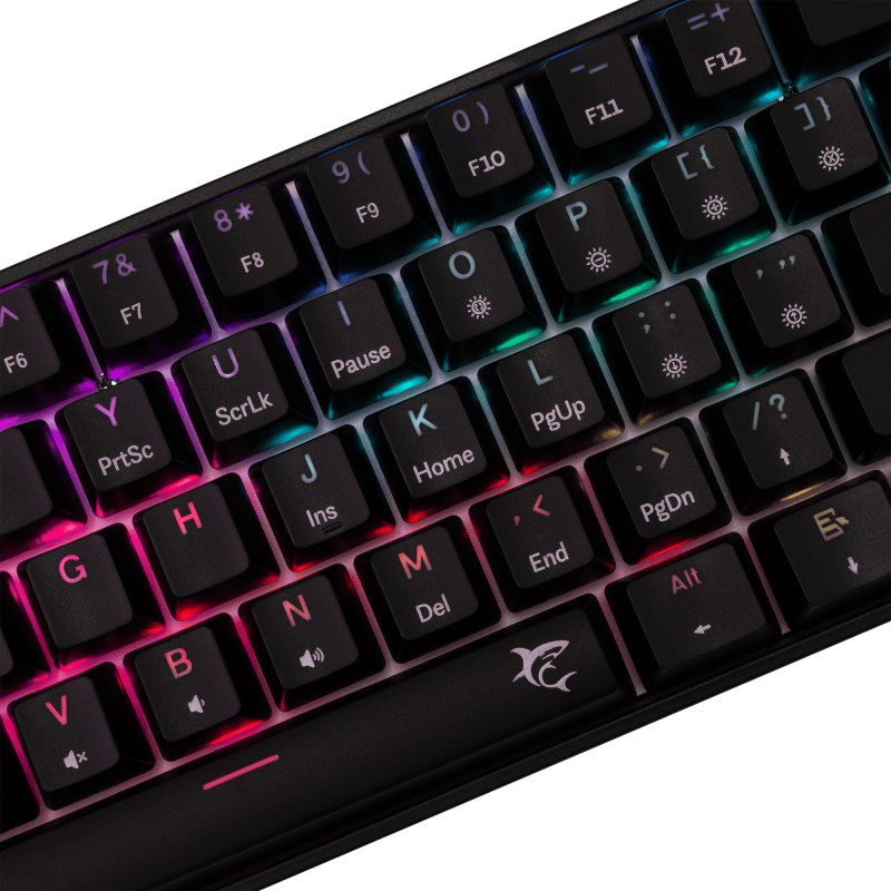 Clavier Gaming Mécanique White Shark GK-004111 SHINOBI-2 - Nombre de touches : 61/62 - Disposition des touches : Compacte - Type de commutateur : YUSYA 5P Hot-Swap Mécanique Rouge - Durée de vie : Plus de 50 millions de clics - Éclairage : RGB par touche - Anti-ghosting complet - Interface : Type C - USB 2.0 (détachable) - Pieds supplémentaires relevables - Câble tressé - Longueur du câble : 1,8 m - Matériau : plastique ABS - Dimensions : 292 x 102 x 39 mm - Poids : 530 g - Couleur Noir - Garantie 1 an