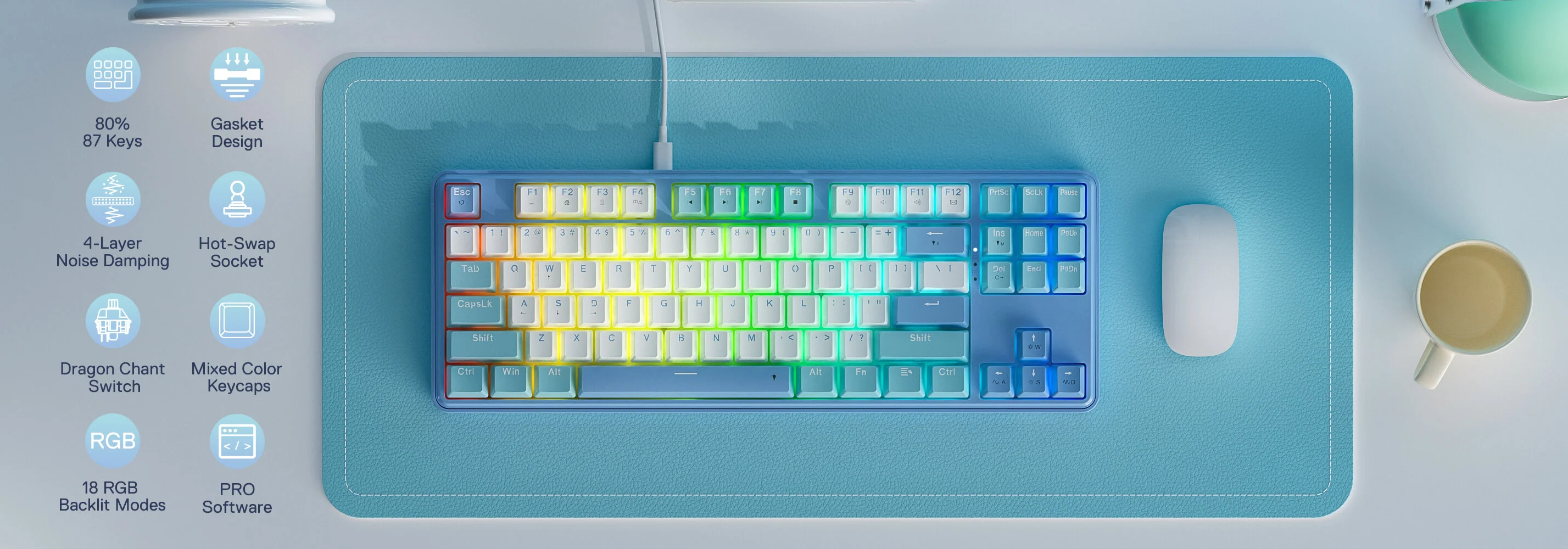 Clavier Gamer Mécanique REDRAGON STAR BLADE K707WBB - Clavier filaire 87 touches 80 % TKL - Interface : Câble USB-C détachable - Norme du clavier : AZERTY - Rétroéclairage : RGB - Anti-ghosting - Interrupteur linéaire Dragon Chant personnalisé - Structure du joint - Socket remplaçable à chaud - Amortissement du bruit à 4 couches - Hauteur réglable - Compatibilité : Windows, Mac, Linux - Dimensions : 36,5 x 13,0 x 3,7 cm - Poids : 1.1 Kg - Garantie 1 an