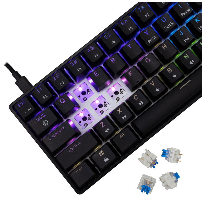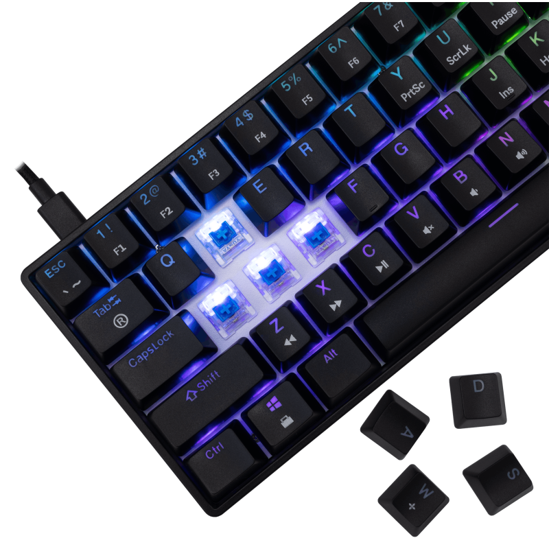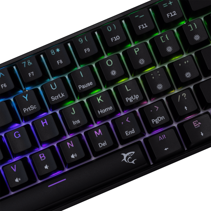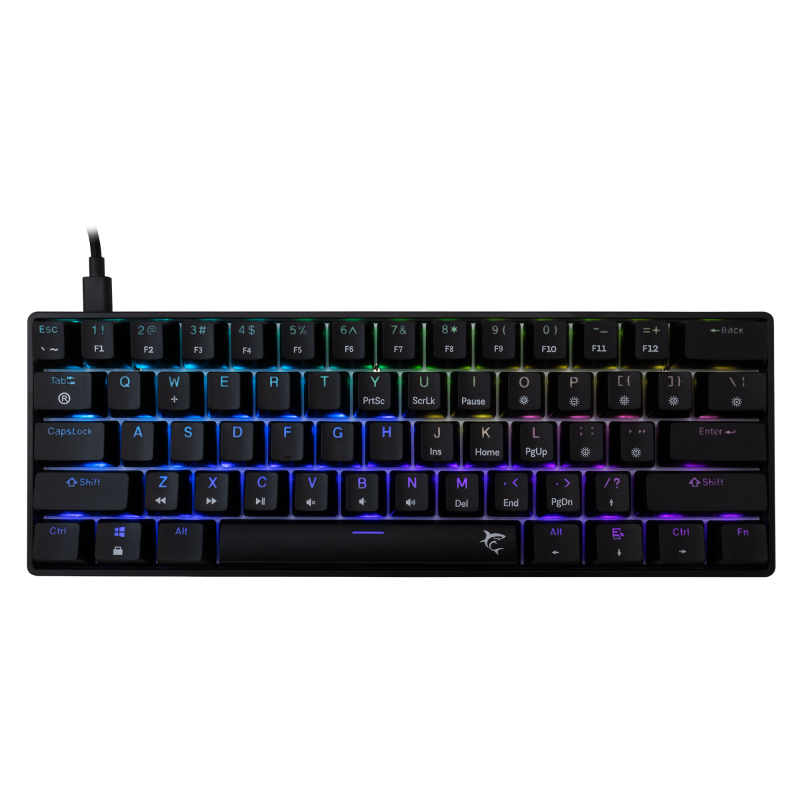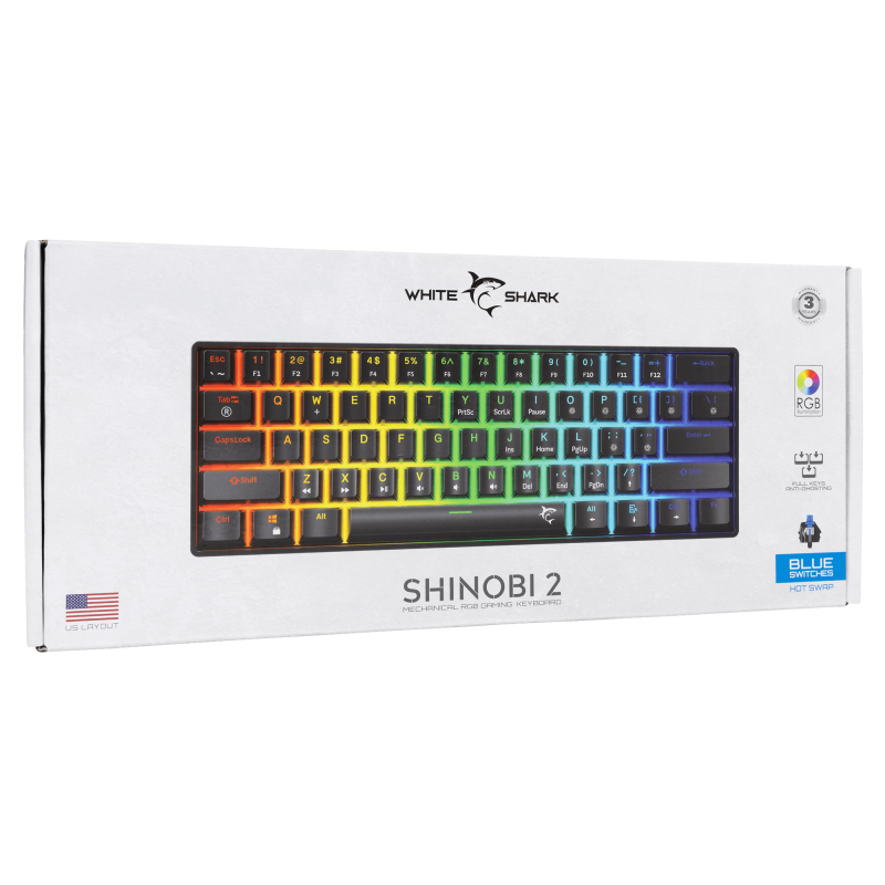Clavier Gaming Mécanique White Shark GK-004121 SHINOBI-2 - Nombre de touches : 61/62 - Disposition des touches : Compacte - Type de commutateur : YUSYA 5P Hot-Swap Mécanique Bleu - Durée de vie : Plus de 50 millions de clics - Éclairage : RGB par touche - Anti-ghosting complet - Interface : Type C - USB 2.0 (détachable) - Pieds supplémentaires relevables - Câble tressé - Longueur du câble : 1,8 m - Matériau : plastique ABS - Dimensions : 292 x 102 x 39 mm - Poids : 530 g - Couleur Noir - Garantie 1 an