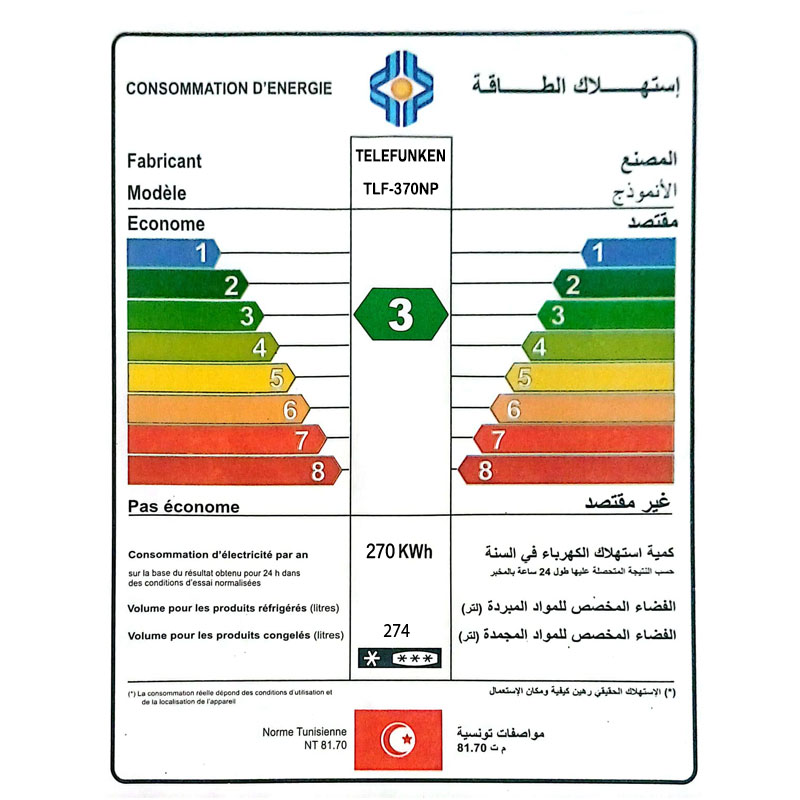 Congélateur Horizontal TELEFUNKEN - Système de refroidissement: DeFrost - Volume: 370 Litres - Classe climatique: T - Intervalle de température: -25°C / +5°C - Mode Dégivrage: Manuel - Dimensions: 87 x 123 x 70 cm - Couleur: Blanc - Garantie: 3 ans