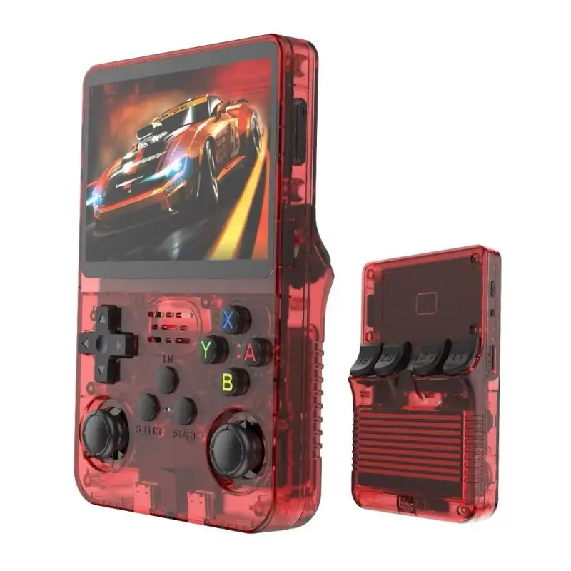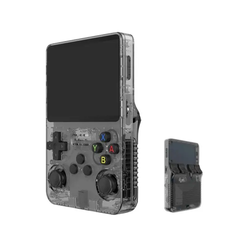 Console de Jeu Video R36S Rétro - Écran IPS de 3,5 pouces - résolution 640 x 480 - Capacité de batterie : 3500 mAh - Autonomie : Jusqu'à 6 heures - Prend en charge plus de 10 000 jeux classiques - Contrôles : D-pad, boutons BAXY, analogs/joysticks doubles - Garantie 1 an
