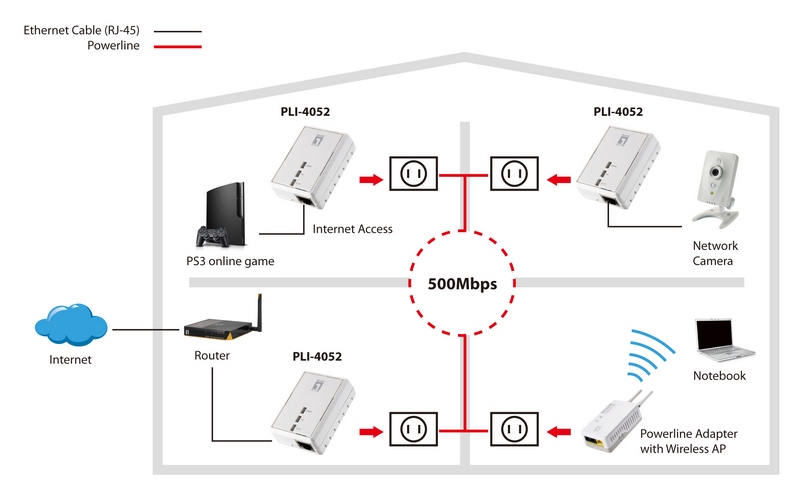 L'adaptateur LevelOne PLI-4052 500Mbps Powerline vous permet de construire un réseau puissant et sans encombrement sans se ruiner. La dernière technologie HomePlug AV permet une transmission de données via les câbles électriques au lieu de câbles réseau en désordre. Il suffit de brancher les adaptateurs PLI-4052 dans les prises murales sans aucune configuration et un réseau powerline stable sera prêt avec une incroyable facilité.