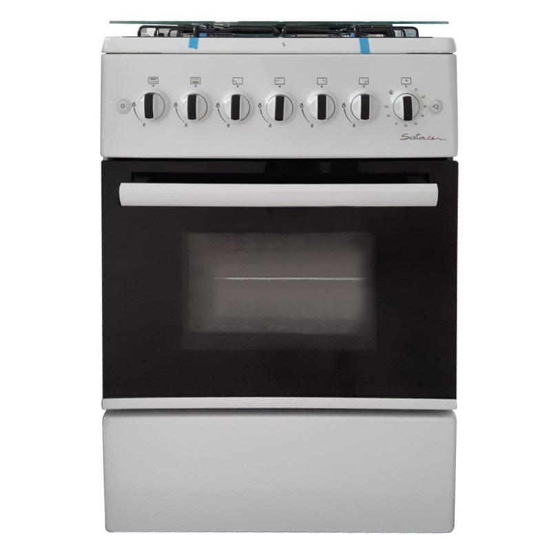 Cuisinière à Gaz SOTACER - Nombre de Feux: 4 - Largeur: 60 cm - Allumage automatique - Éclairage Four - Minuterie - Couvercle en verre - Porte Four double vitrage - Couleur: Blanc - Garantie: 2 ans