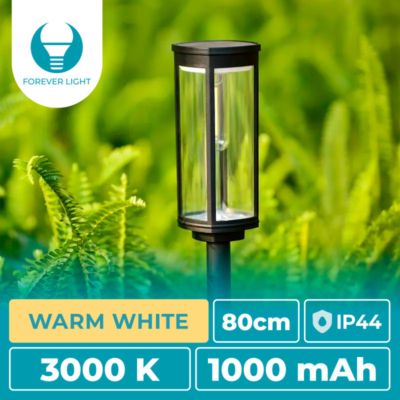 Forever Light Solar LED Lamp SUNARI FLS-97 - Température de couleur : blanc chaud 3000K - type de panneau solaire : panneau solaire polycristallin - Capacité de la batterie : 1000 mAh - Temps de charge solaire (en plein soleil) : 8 heures - Nombre de diodes : 1 pièce - Longueur : 50 cm - Température de fonctionnement : -10°C à +45°C - Matériel : PS - Résistant aux éclaboussures et à l'humidité IP44 - Garantie 1 an