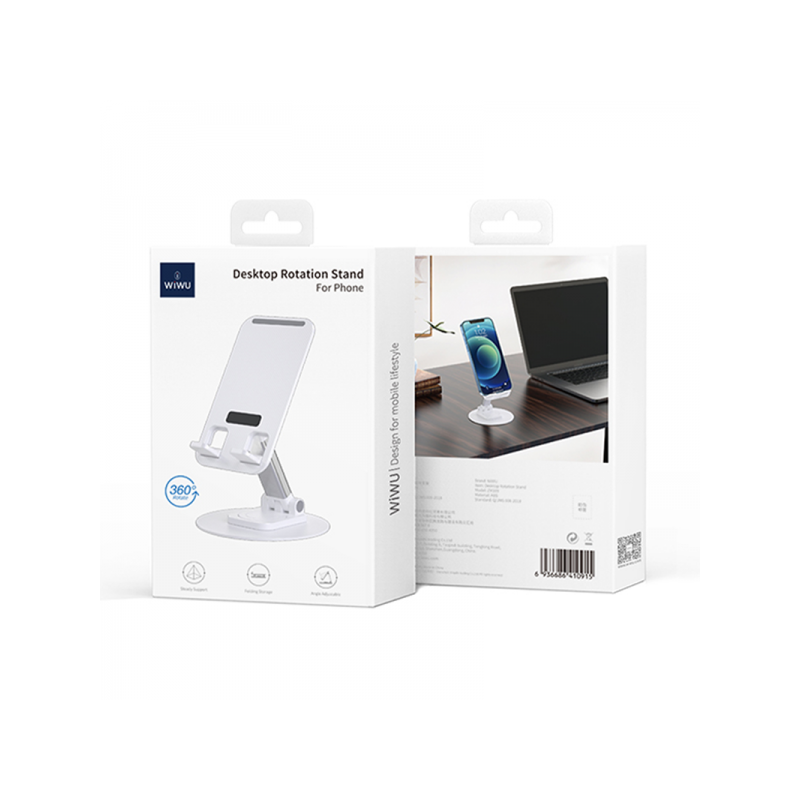 Support WIWI ZM109 ROTATIONNEL DE BUREAU POUR SMARTPHONE ET TABLETT - Rotation à 360 degrés - Un soutien constant - Rangement pliable - Angle réglable - Couleur Blanc