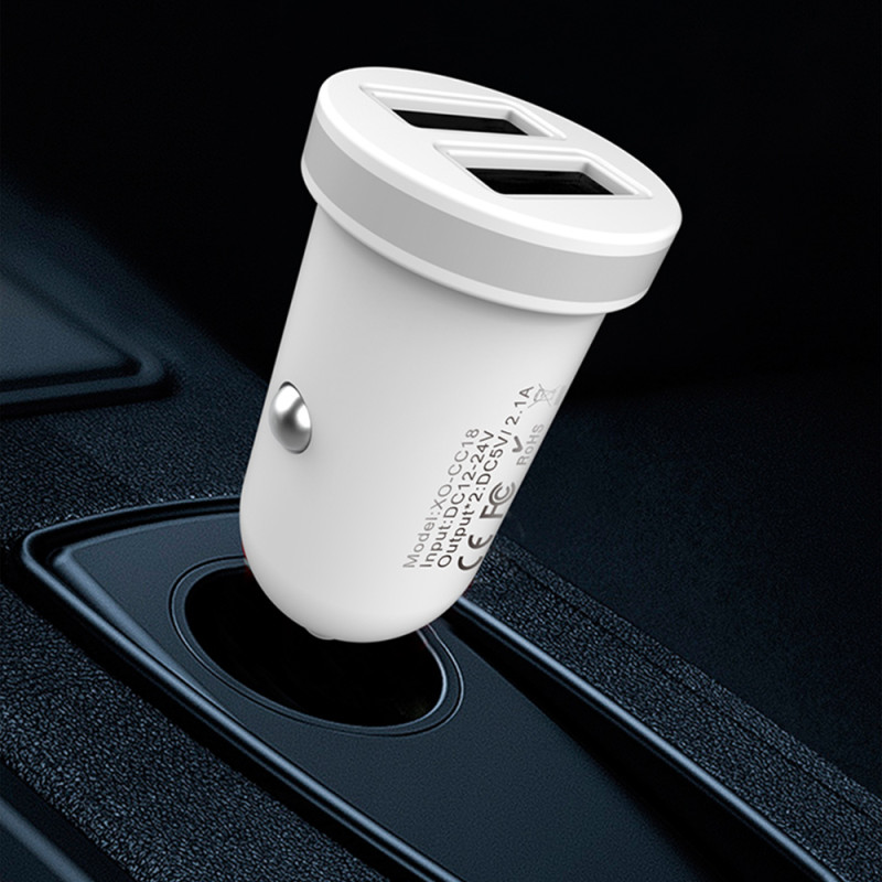 Chargeur de voiture XO TZ08 - Connecteur : 2x USB-A (femelle) - Câbles inclus : USB-A / microUSB - Courant maximal : 2.10 A - Couleur : Blanc