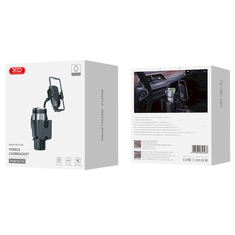 Support voiture XO C140 - Matériaux : ABS + silicone + éponge + fil d'acier - Longueur télescopique 65~98 mm, tension de la pince 65~88 mm - Scénarios d'utilisation : Intérieur, configuration adaptée aux emplacements pour verres d'eau - Environnement de fonctionnement : température élevée 50 °C, température basse -50 °C, humidité 95 % 25 °C - Dimensions du produit : 120 x 98 x 149 mm - Couleur Noir