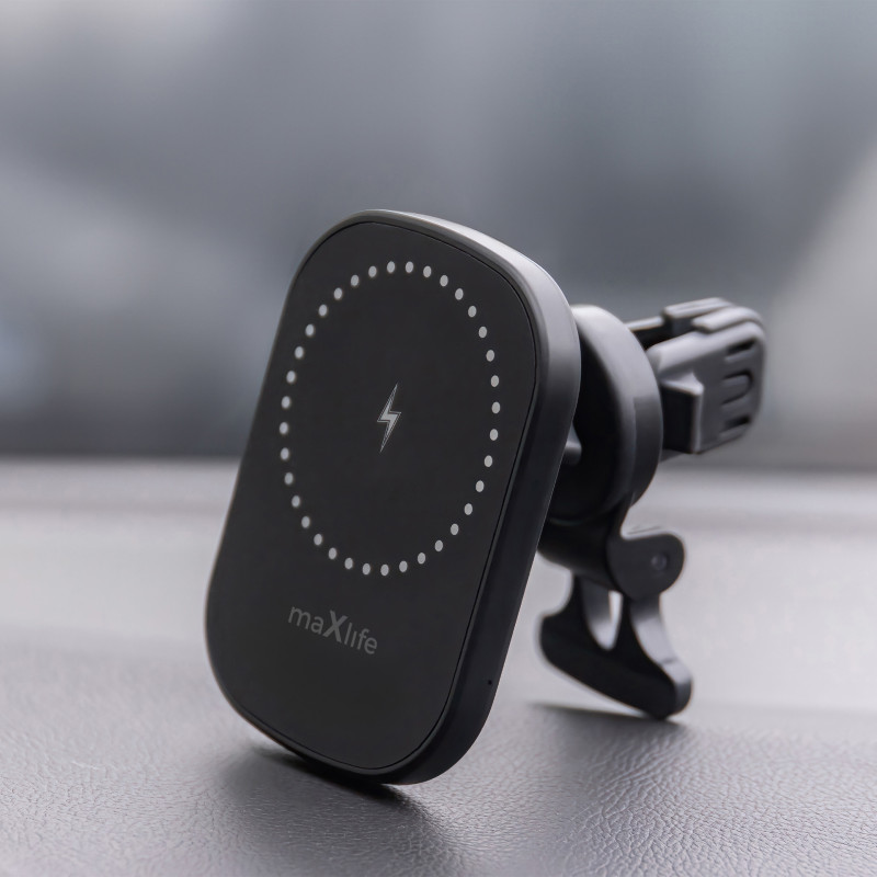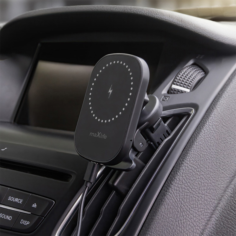 Support voiture magnétique pour grille d'aération Maxlife avec charge sans fil / Noir