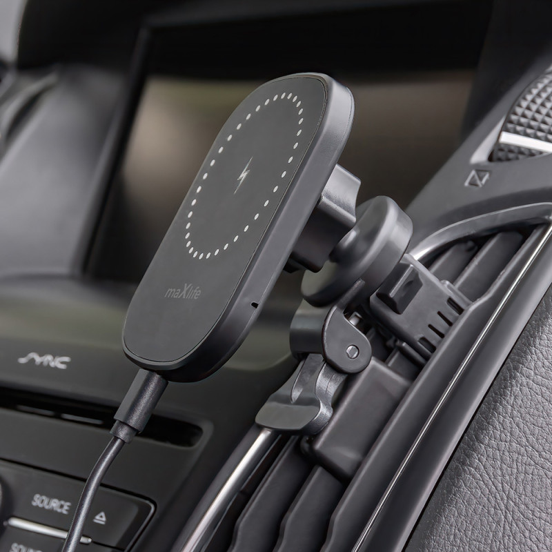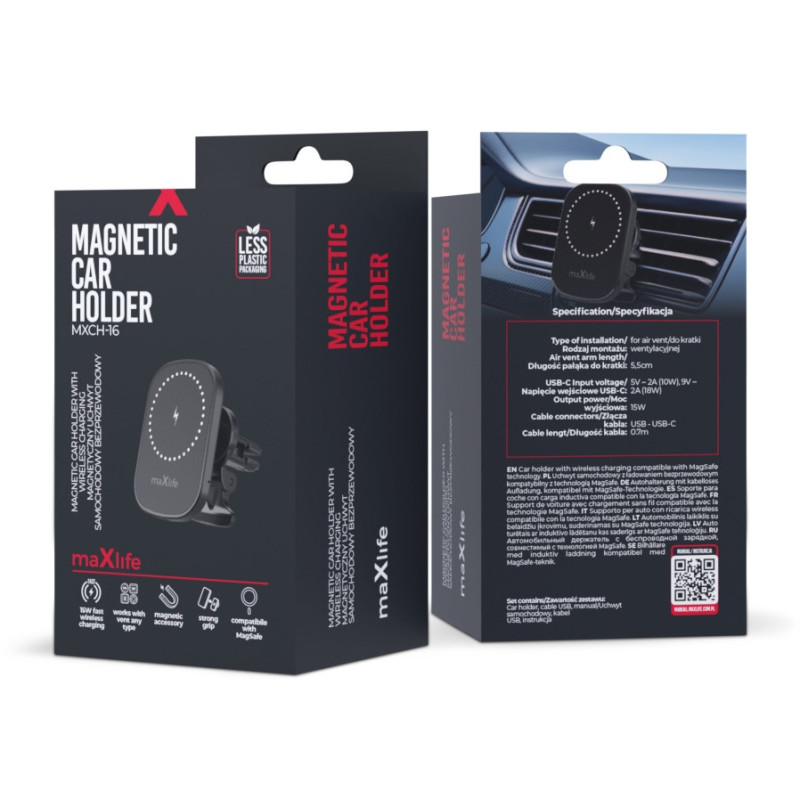 Support voiture magnétique pour grille d'aération Maxlife MXCH-16 - Puissance maximale : 15 W - Compatible avec MagSafe - Lieu d'installation : sur la ventilation - Couleur Noir