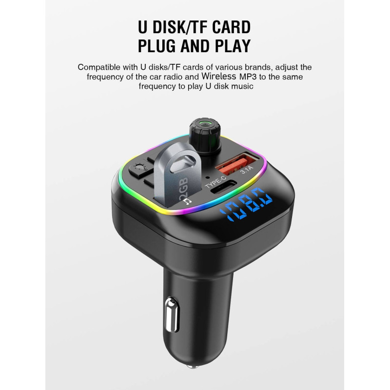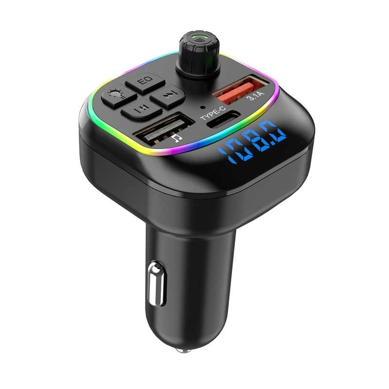 Transmetteur FM Bluetooth Pour Voiture avec Chargeur USB et Type-C M54 - Connexion Bluetooth 5.3: diffusion de musique sans fil et appels mains libres - MICRO - Lecteur carte mémoire - Ports multiples: USB 3.1A, Type-C et USB musique pour recharger et lire des fichiers - Écran LED: affichage clair de la fréquence et de l’état de l’appareil - Boutons de commande: contrôle de la musique, EQ, prise d’appel - Éclairage LED multicolore: design moderne et élégant - Couleur Noir - Garantie 1 an