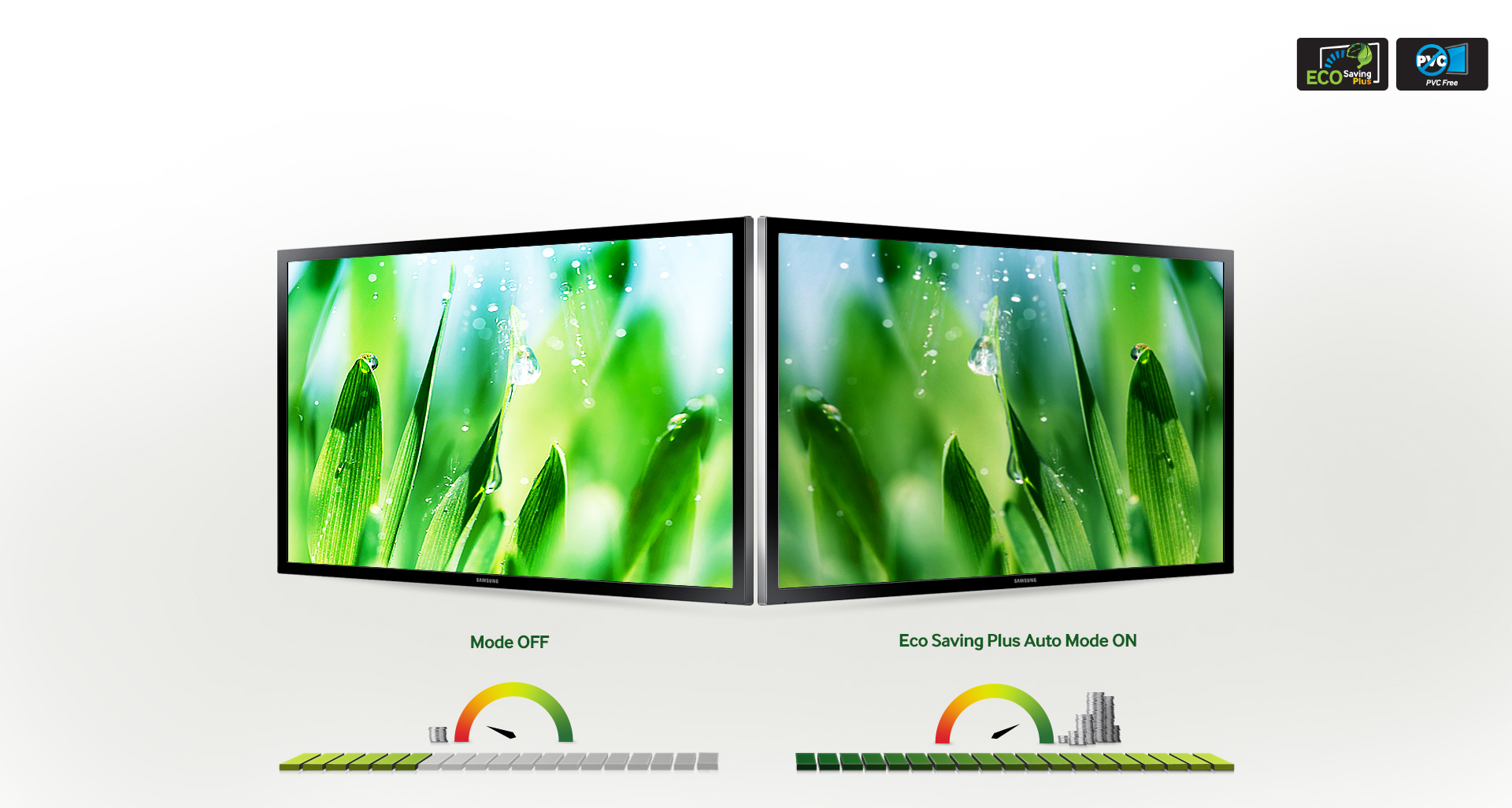 • Eco Saving Plus: La technologie Eco-saving réduit la luminosité de l'écran pour une efficacité énergétique accrue. En complément de deux réglages manuels standards (minimum à 25% et maximum à 50%), il y a dorénavant un nouveau paramétrage automatique basé sur la luminescence des zones noires de l'écran réduisant jusqu'à 10%* l'énergie consommée. La luminosité de l'écran s'adapte progressivement tout en préservant l'énergie.