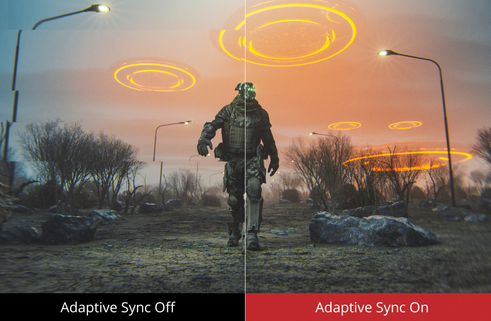 Bénéficez de graphismes fluides sur tous vos jeux grâce à la techonologie Adaptive™ Sync. En synchronisant le taux de rafraîssement de votre moniteur avec la sortie de votre GPU, la technologie Adaptive™ Sync offre un jeu fluide en éliminant les saccades, le temps de latence et la distorsition des images.