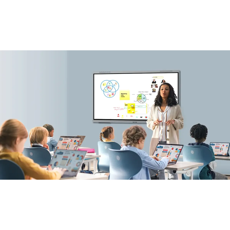 Écran interactif MAXHUB 75'' - Résolution 4K : 3840 (H) × 2160 (V) - Luminosité du panneau : 450 nits (max.) - Rapport d'aspect : 16:9 - contraste : 5 000:1 (typ.) - Technologie de surface : Anti-reflets - Taux de rafraîchissement : 60 Hz - Temps de réponse : 6,5 ms - Unité de rétroéclairage : DLED - Technologie tactile : Reconnaissance infrarouge - Système opérateur : Android 14.0 - RAM : 8 Go DDR4 - ROM : 128 Go - Processeur octocœur A72×4 + A53×4, 2,2 GHz - Connectivité : 3x HDMI, 1x USB 2.0, 4x USB 3.0, 2x USB-C, 1x DisplayPort, 1x VGA, 1 port RS232, 1x RJ45, 1 lecteur de carte TF - Wi-Fi 6, Bluetooth 5.2 - Système audio SkyWave - Chaîne sonore : 2.2 - Puissance du haut-parleur : 2×8W+2×18W (sortie) / 2×12W+2×25W (maximum) - Niveau de pression acoustique : 88 dB (1W, 1m) - anti-scintillement, réduction de la lumière bleue - Alimentation : 100-240 V~ 50/60 Hz 4,0 A - Garantie 1 an