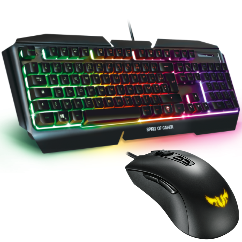 Pack Gaming Clavier Gaming Rétroéclairé Spirit of Gamer Pro-K5 ( CLA-PK5 ) + Souris Gamer Asus TUF Gaming M3 ( 90MP01J0-B0UA00 ) - Garantie 1 an