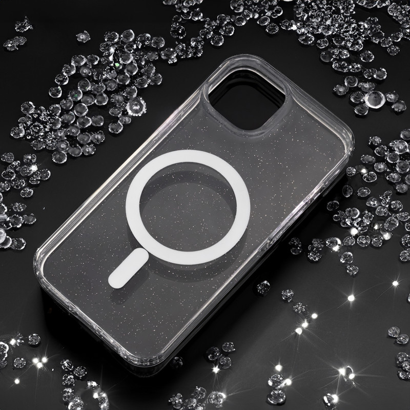 Coque Shine Magsafe pour iPhone 15 Pro 6,1" - Matériel : TPU (polyuréthane thermoplastique) + PC - Compatible avec MagSafe - Couleur transparent