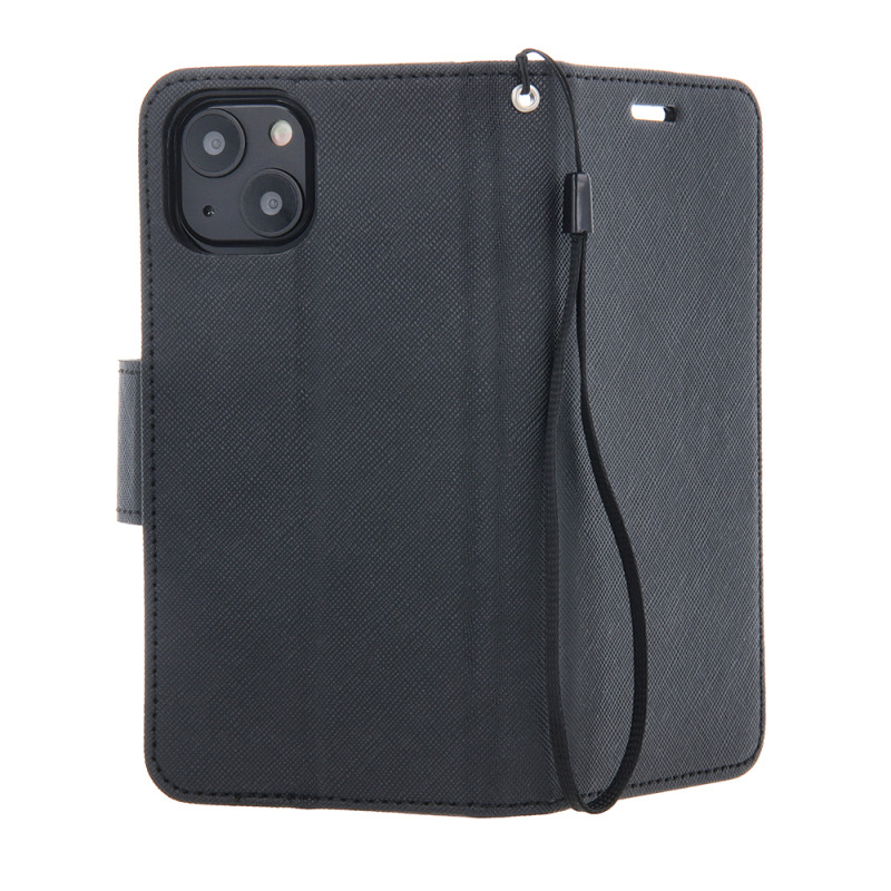 Coque Smart Fancy pour iPhone 16 Pro 6,3" - Matériel : Cuir synthétique, TPU - fermeture magnétique, porte-cartes, fonction support - Couleur Noir