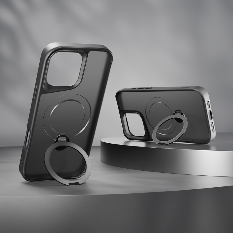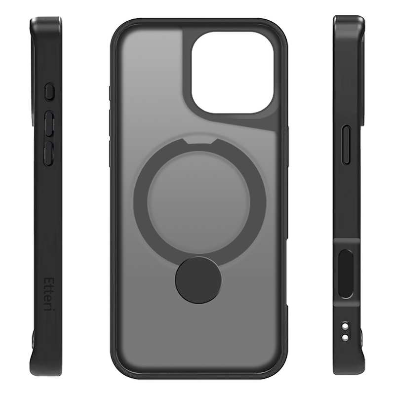 Coque Eteri Matt Magsafe Ring pour iPhone 16 Pro Max 6,9" - Matériel : TPU, PC - Poignée rotative en métal avec fonction support - Compatible avec MagSafe - Couleur Noir