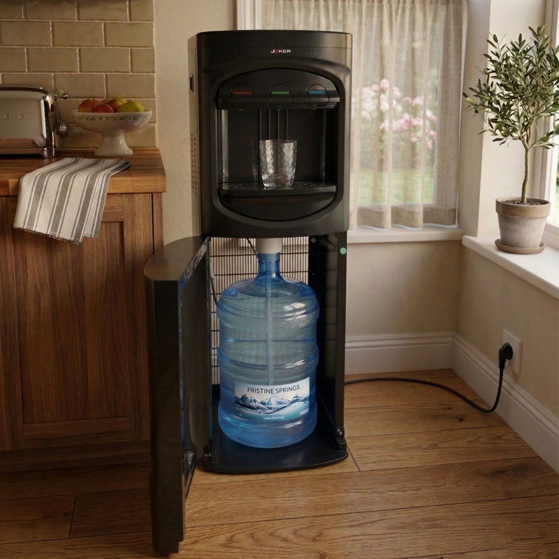Fontaine D'eau fraiche JOKER - Volume : 20 Litres - Distributeur d'eau : Chaud, froid et Tiède - Capacité du réservoir chaud : 0,75 Litre - Capacité du réservoir Froid : 2,2Litre - 3 robinets ergonomique - Matériau de réservoir : Acier inoxydable - Compresseur haute performance - Contrôle facile de robinet - Réfrigérant : R134a - Dimensions : 335 x 370 x 1025mm - Couleur : Noir - Garantie 1an