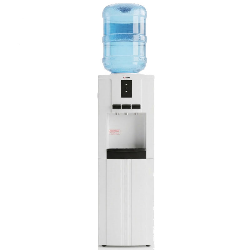 Fontaine D'eau fraiche JOKER - Volume : 20 Litres - Distributeur d'eau : Chaud, froid et Tiède - Capacité du réservoir chaud : 1 Litre - Capacité du réservoir Froid : 3,2Litre - Nombre de Robinets : 3 robinets ergonomique - Matériau de réservoir : Acier inoxydable - Compresseur haute performance - avec tiroire - Contrôle facile de robinet - Réfrigérant : R134a - Dimensions : 360 x 370 x 960 mm - Couleur : blanc - Garantie 1an