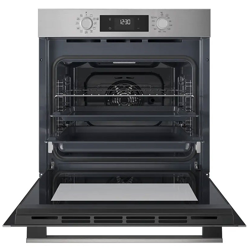Four Encastrable Electrique - Volume : 71 Litres - Classe énergétique : A+ - Nombre de Programmes : 11 Programmes - 3 Cuisson automatique - Lunettes de porte doubles - Guide des étagères - Système de ventilation de sécurité - Panneau numérique avec double bouton - Friture à l'air - Rails de guidage télescopiques - Nettoyage des diamants : cycle de nettoyage à la vapeur à 90°C pendant 35 minutes - Couleur : inox - Garantie 2ans