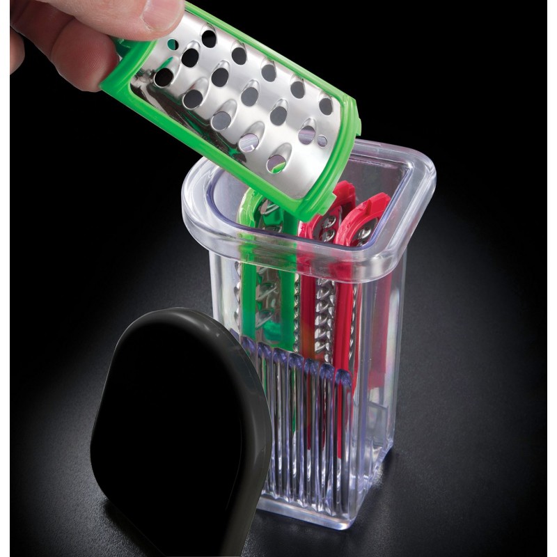 Combinant la forme et la fonction, cette accessoire à râper et trancher possède un desgin fluide et contemporin, en rouge et noir. Simple d'utilisation et facile à nettoyer, il vous rend la vie facile pour vos prépartion culinaires?
